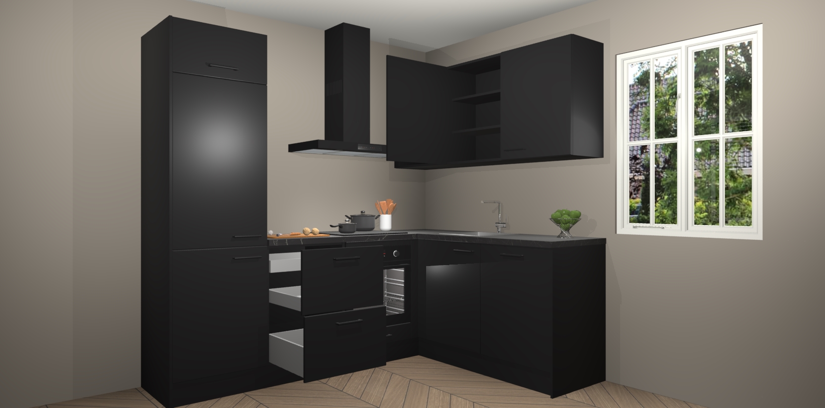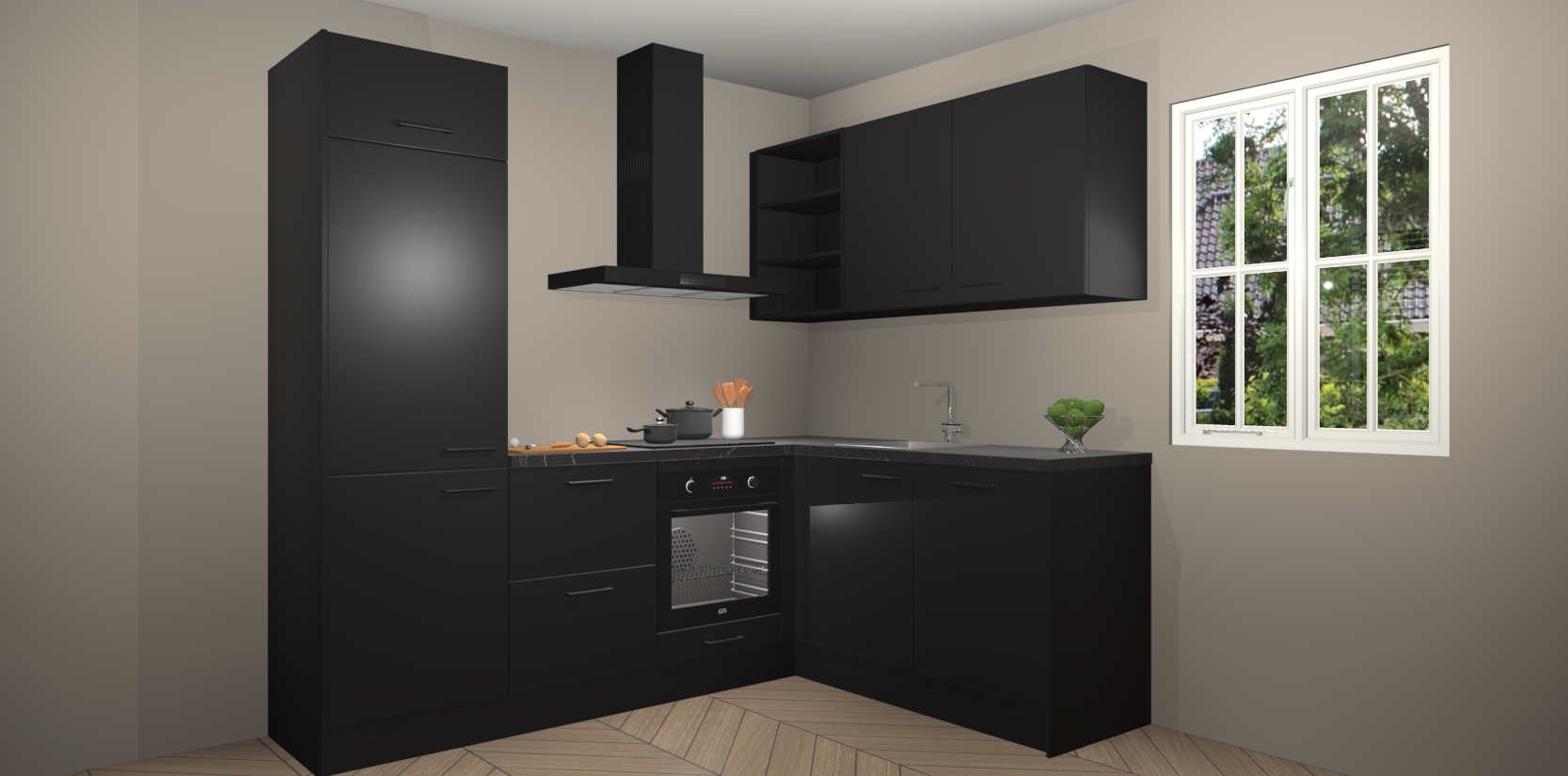 Dit model biedt u voldoende opbergruimte en vijf ingebouwde apparaten: een oven, inductiekookplaat, afzuigkap, vaatwasser en koelkast. Deze apparaten kunnen gemakkelijk worden geüpgrade naar AEG nadat u besteld heeft. De verschillende laden en kastjes bevatten softclose-deuren waardoor ze gezellig dichtvallen met een geruststellend helemaal geruisloos geluid. En dat is nog niet alles! We garanderen ook dat de prijs altijd laag blijft - dus haal nu uw Zwarte keuken Krakau terwijl het kan.
