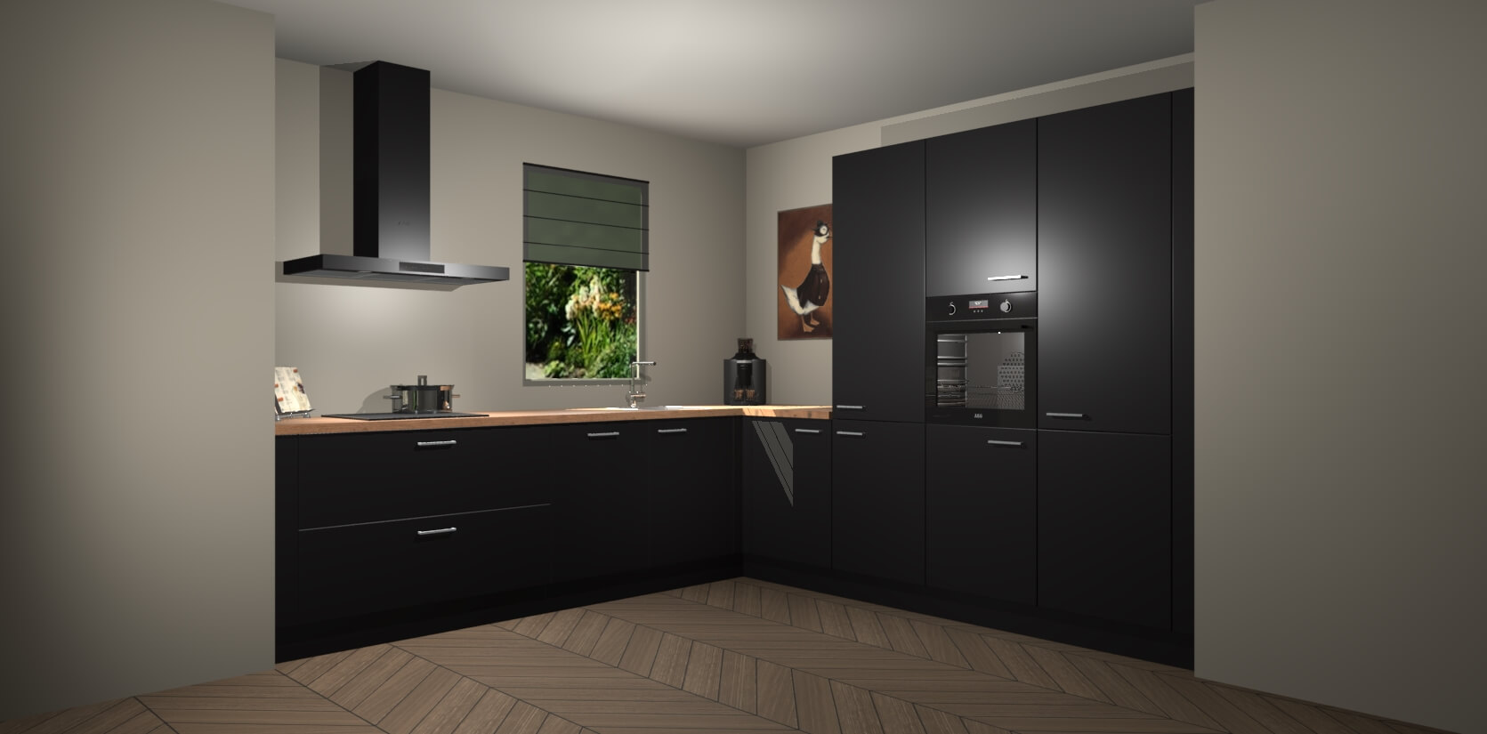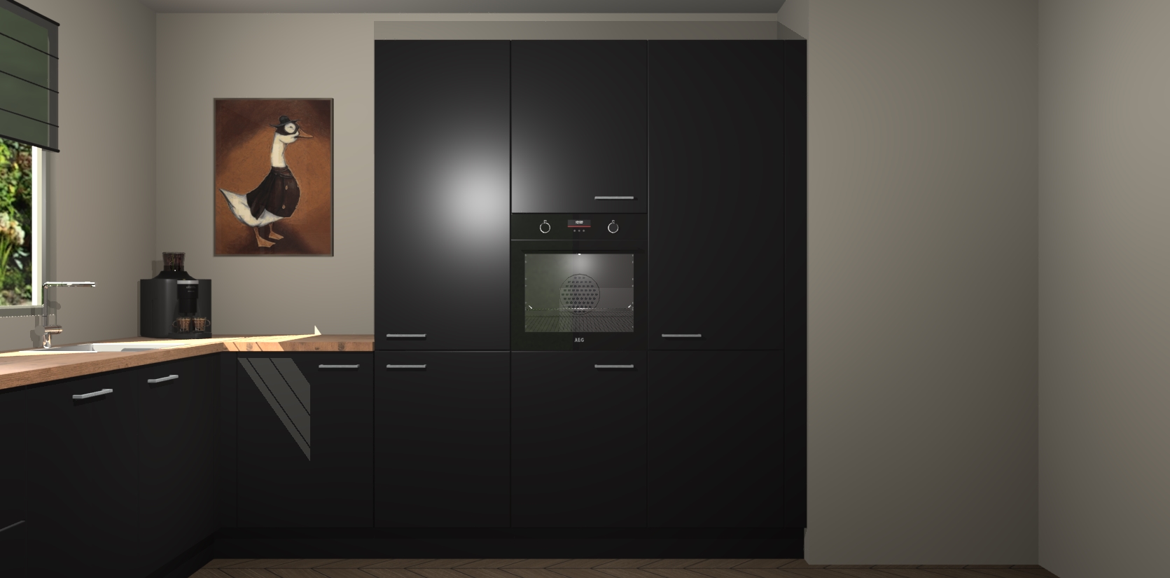 Welkom bij de Zwarte keuken Laos. Deze prachtige keuken zal de komende jaren het middelpunt van de belangstelling in uw huis zijn. Uitgerust met vijf inbouwapparaten komt u nooit kookgereedschap tekort. Bovendien geeft de warme houtlook elke ruimte een uitnodigende en tijdloze uitstraling.