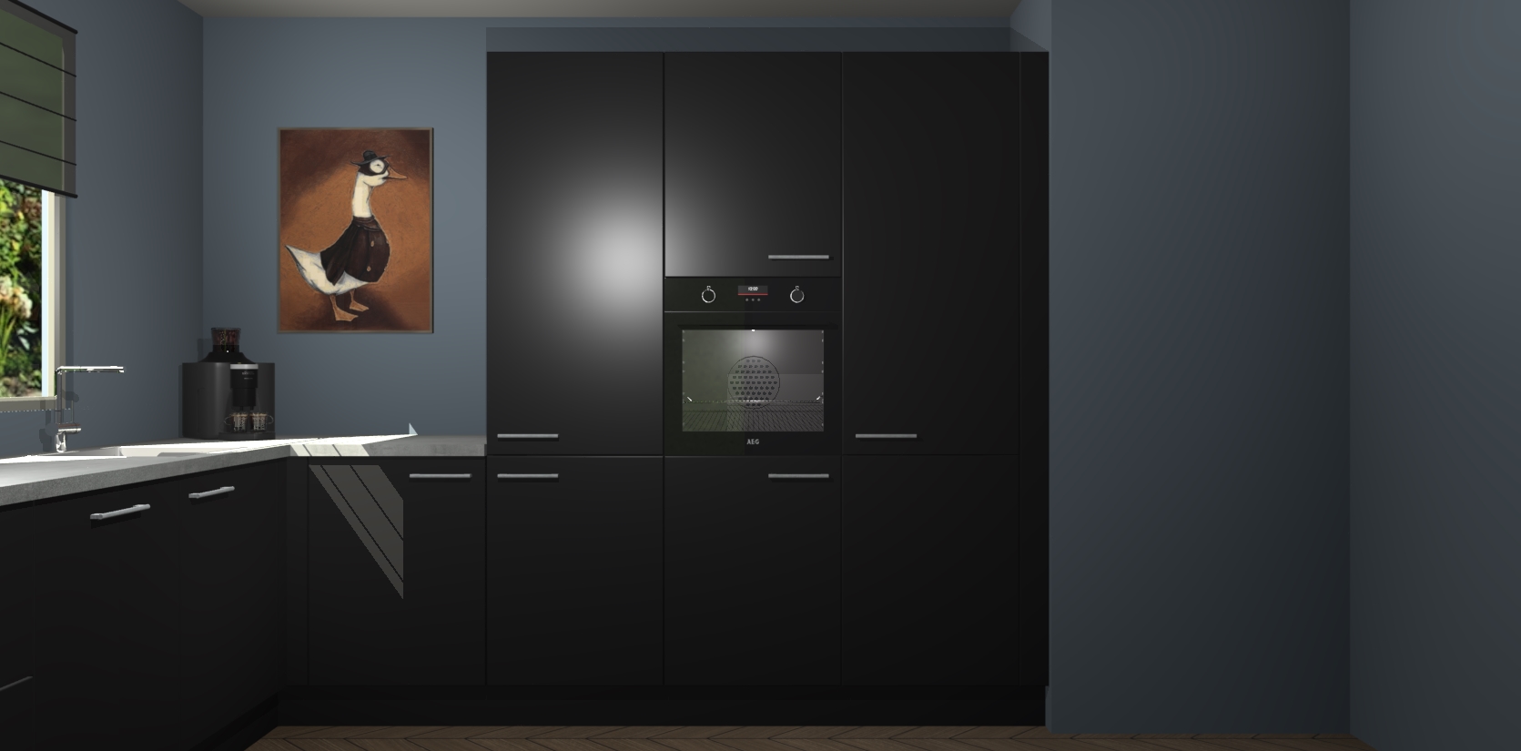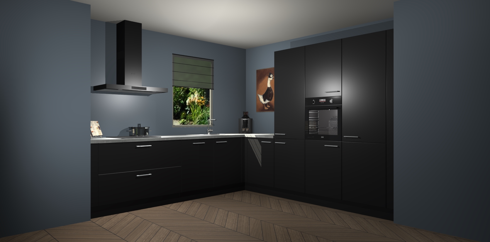 Welkom bij de Zwarte keuken Laos. Deze prachtige keuken zal de komende jaren het middelpunt van de belangstelling in uw huis zijn. Uitgerust met vijf inbouwapparaten komt u nooit kookgereedschap tekort. Bovendien geeft de warme houtlook elke ruimte een uitnodigende en tijdloze uitstraling.