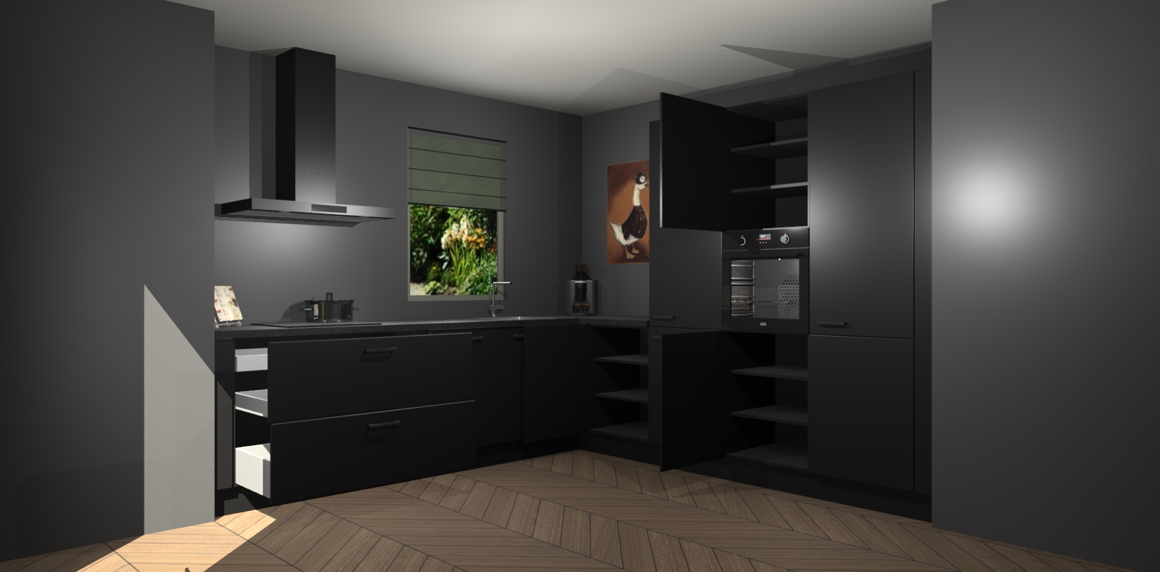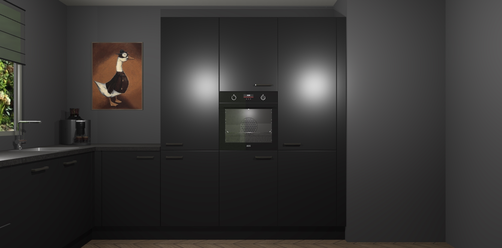 Welkom bij de Zwarte keuken Laos. Deze prachtige keuken zal de komende jaren het middelpunt van de belangstelling in uw huis zijn. Uitgerust met vijf inbouwapparaten komt u nooit kookgereedschap tekort. Bovendien geeft de warme houtlook elke ruimte een uitnodigende en tijdloze uitstraling.