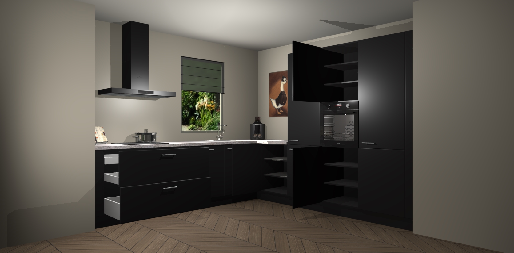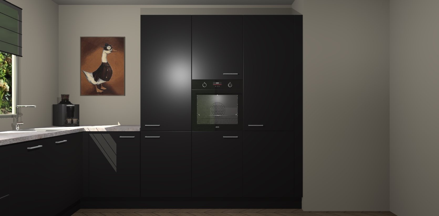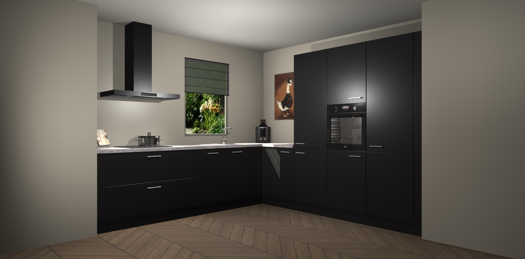 Welkom bij de Zwarte keuken Laos. Deze prachtige keuken zal de komende jaren het middelpunt van de belangstelling in uw huis zijn. Uitgerust met vijf inbouwapparaten komt u nooit kookgereedschap tekort. Bovendien geeft de warme houtlook elke ruimte een uitnodigende en tijdloze uitstraling.