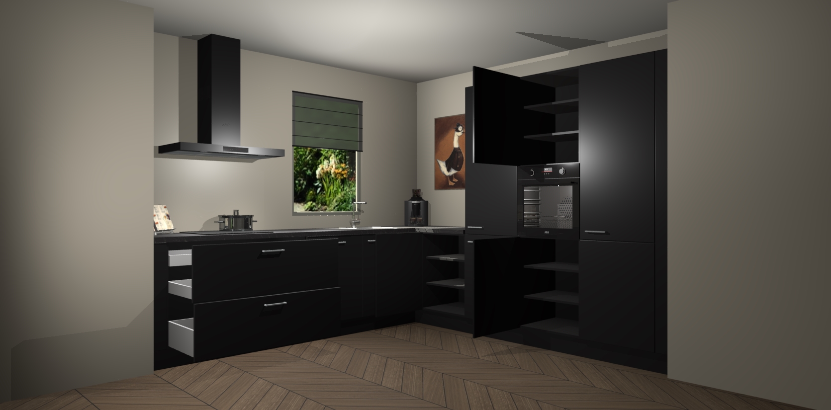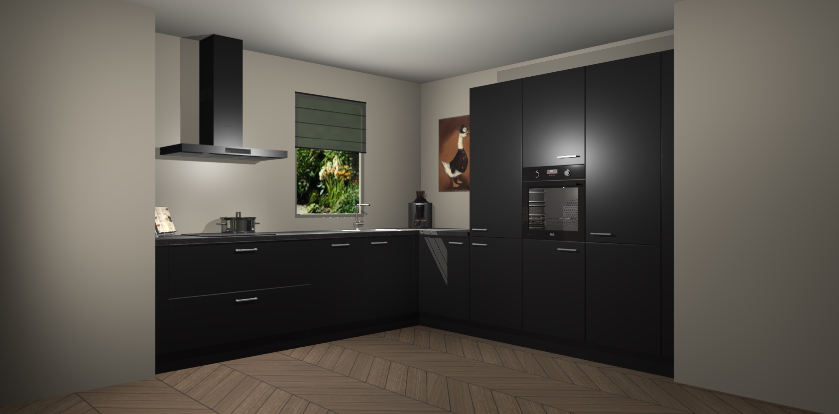 Welkom bij de Zwarte keuken Laos. Deze prachtige keuken zal de komende jaren het middelpunt van de belangstelling in uw huis zijn. Uitgerust met vijf inbouwapparaten komt u nooit kookgereedschap tekort. Bovendien geeft de warme houtlook elke ruimte een uitnodigende en tijdloze uitstraling.