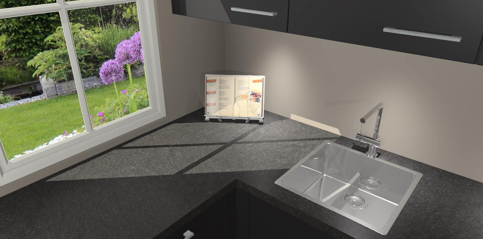 - Bij een hoekwerkblad zijn de hoeken in gevreesd en op maat gemaakt