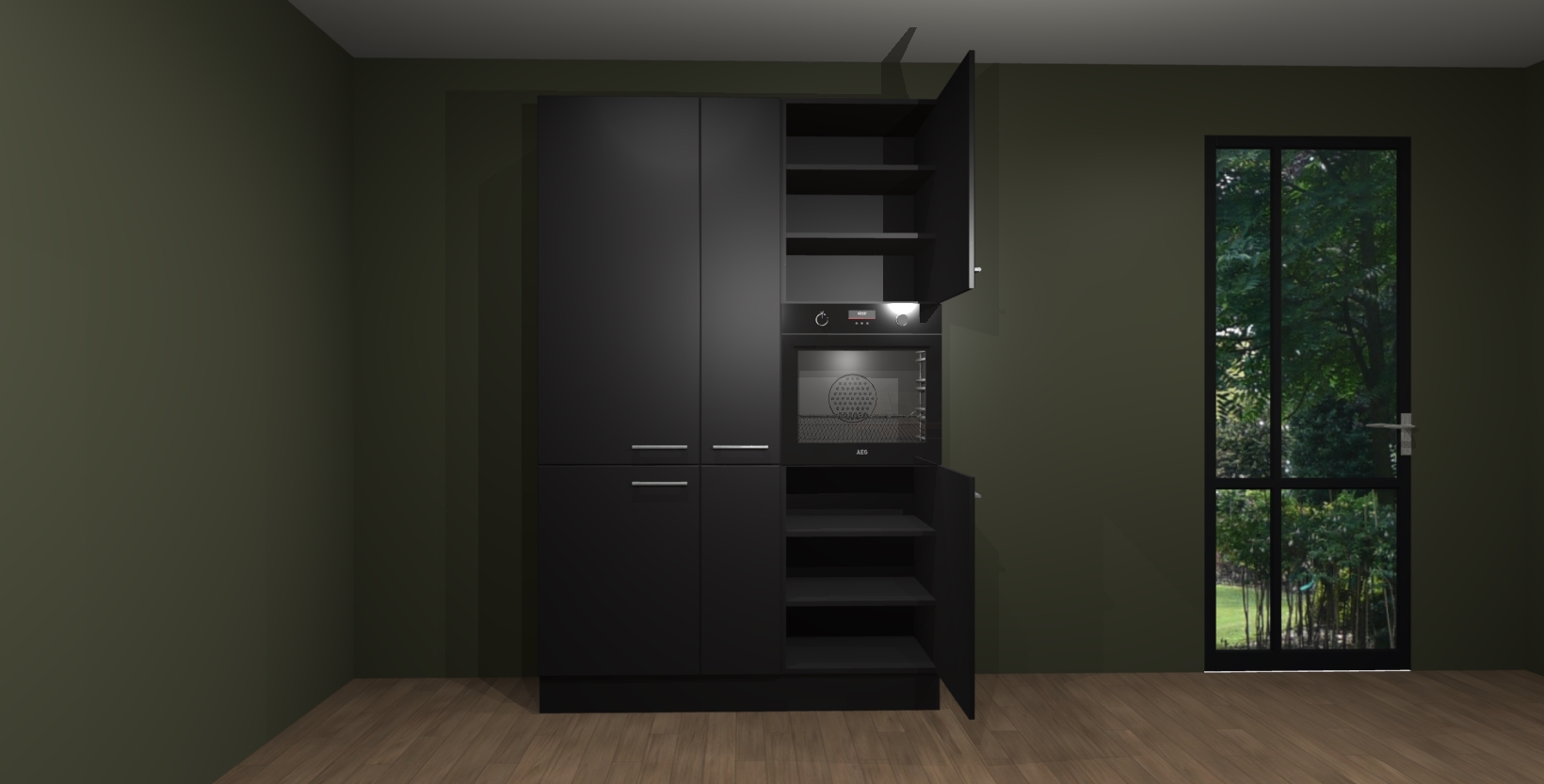 Met een modern, tijdloos design en ruime opslagruimte, zult u zich in no-time thuis voelen in uw nieuwe keuken. Uw leven wordt eenvoudiger met de soft-close deuren die voor het ultieme stille comfort zorgen - geen geluid dat u stoort terwijl u kookt. Ook is de keuken voorzien van 5 ingebouwde apparaten: een oven, inductie kookplaat, afzuigkap, vaatwasser en koelkast. Deze kunnen gemakkelijk na bestelling worden bijgewerkt naar AEG - waardoor uw luxe ervaring compleet is.