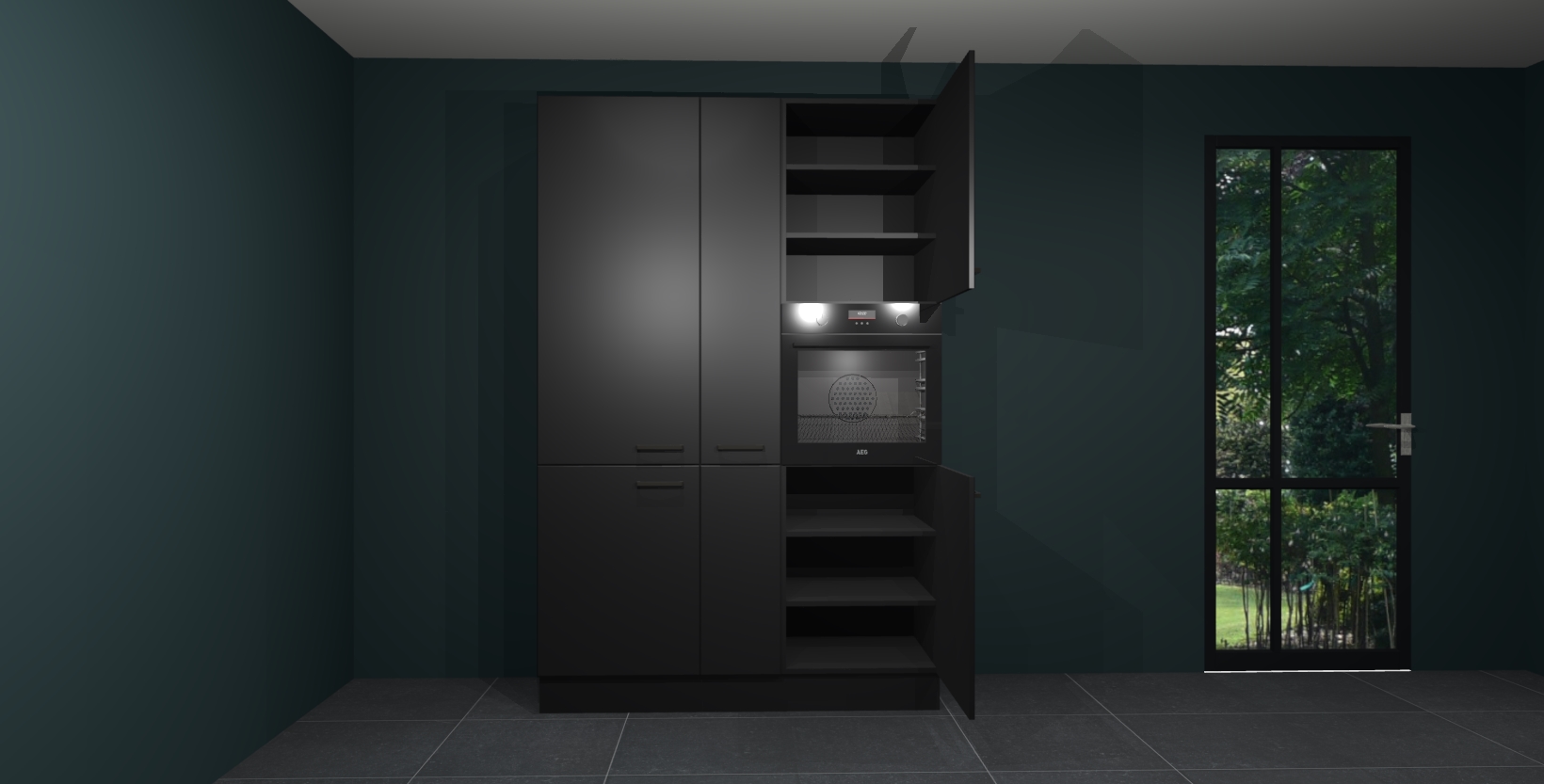 Met een modern, tijdloos design en ruime opslagruimte, zult u zich in no-time thuis voelen in uw nieuwe keuken. Uw leven wordt eenvoudiger met de soft-close deuren die voor het ultieme stille comfort zorgen - geen geluid dat u stoort terwijl u kookt. Ook is de keuken voorzien van 5 ingebouwde apparaten: een oven, inductie kookplaat, afzuigkap, vaatwasser en koelkast. Deze kunnen gemakkelijk na bestelling worden bijgewerkt naar AEG - waardoor uw luxe ervaring compleet is.