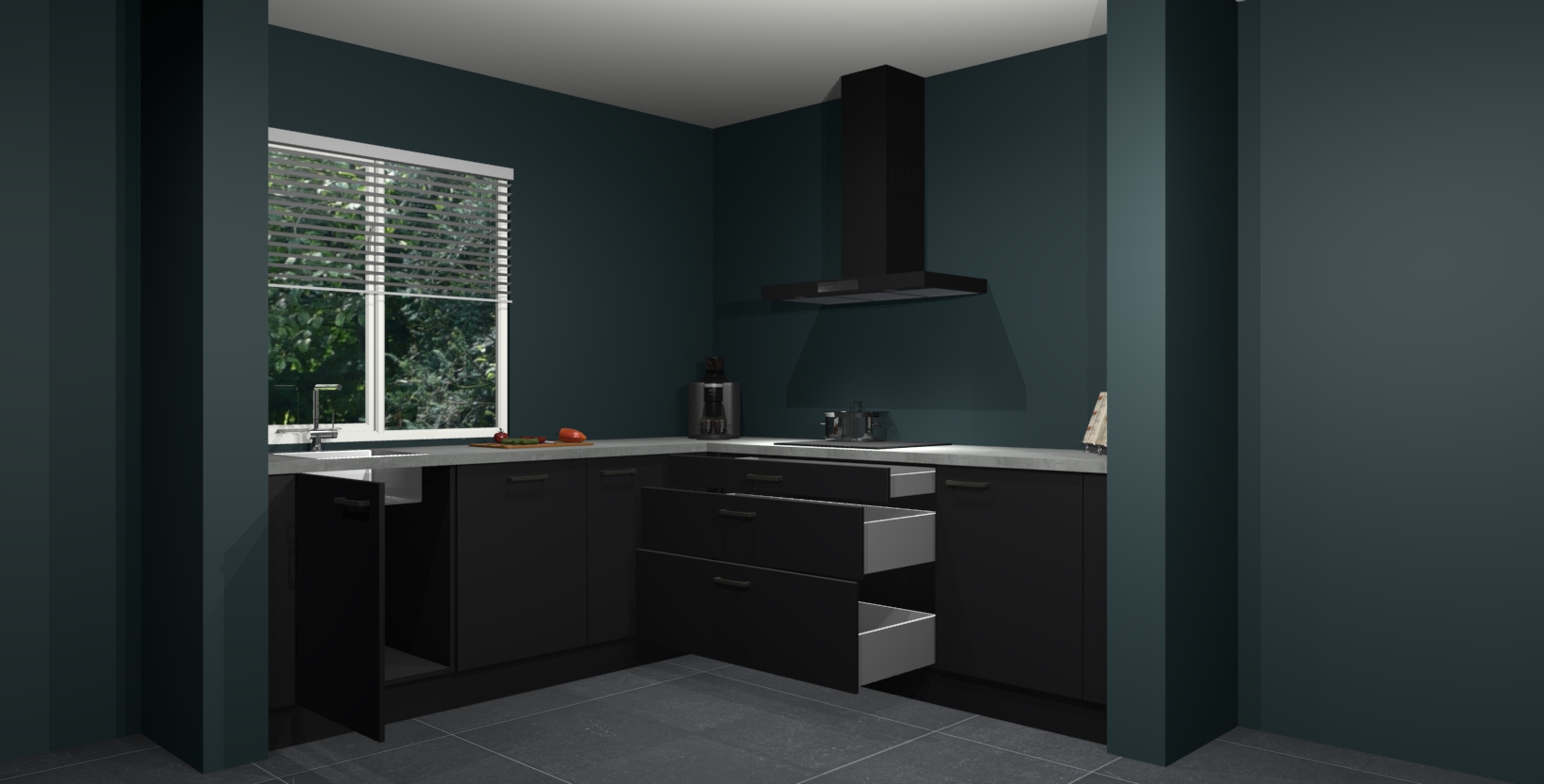 In deze box zijn alle kleuren verzameld van de deuren en werkbladen. Vraag de gratis kleurenbox aan en kijk thuis rustig verder!