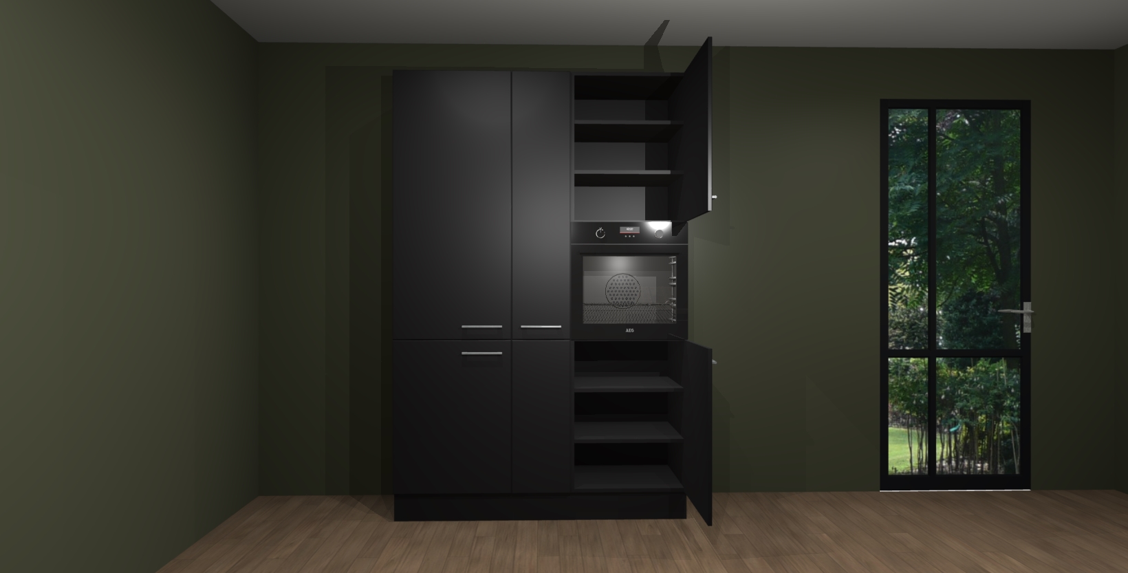 Met een modern, tijdloos design en ruime opslagruimte, zult u zich in no-time thuis voelen in uw nieuwe keuken. Uw leven wordt eenvoudiger met de soft-close deuren die voor het ultieme stille comfort zorgen - geen geluid dat u stoort terwijl u kookt. Ook is de keuken voorzien van 5 ingebouwde apparaten: een oven, inductie kookplaat, afzuigkap, vaatwasser en koelkast. Deze kunnen gemakkelijk na bestelling worden bijgewerkt naar AEG - waardoor uw luxe ervaring compleet is.