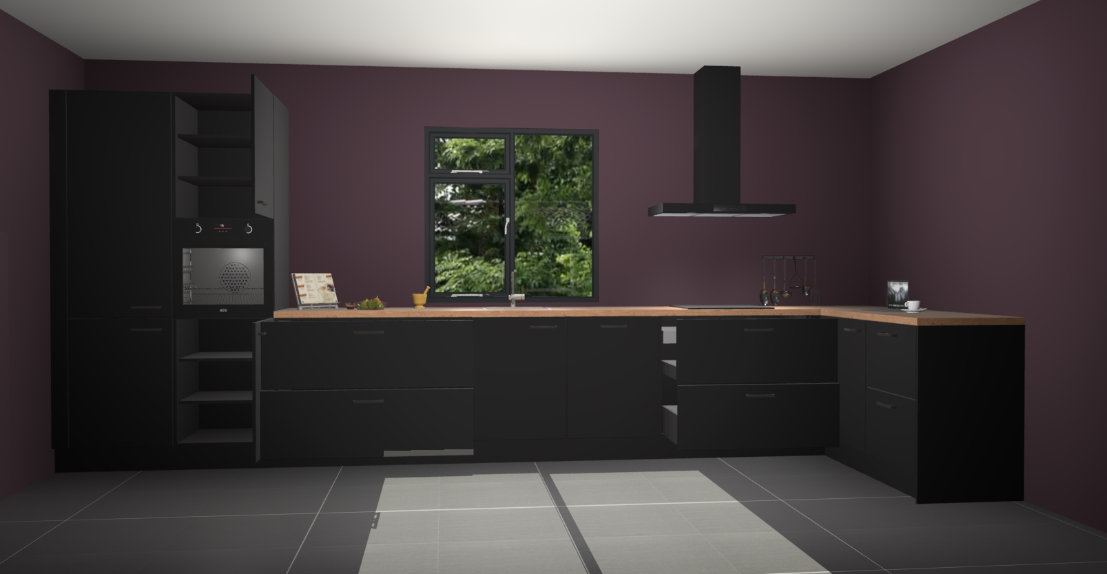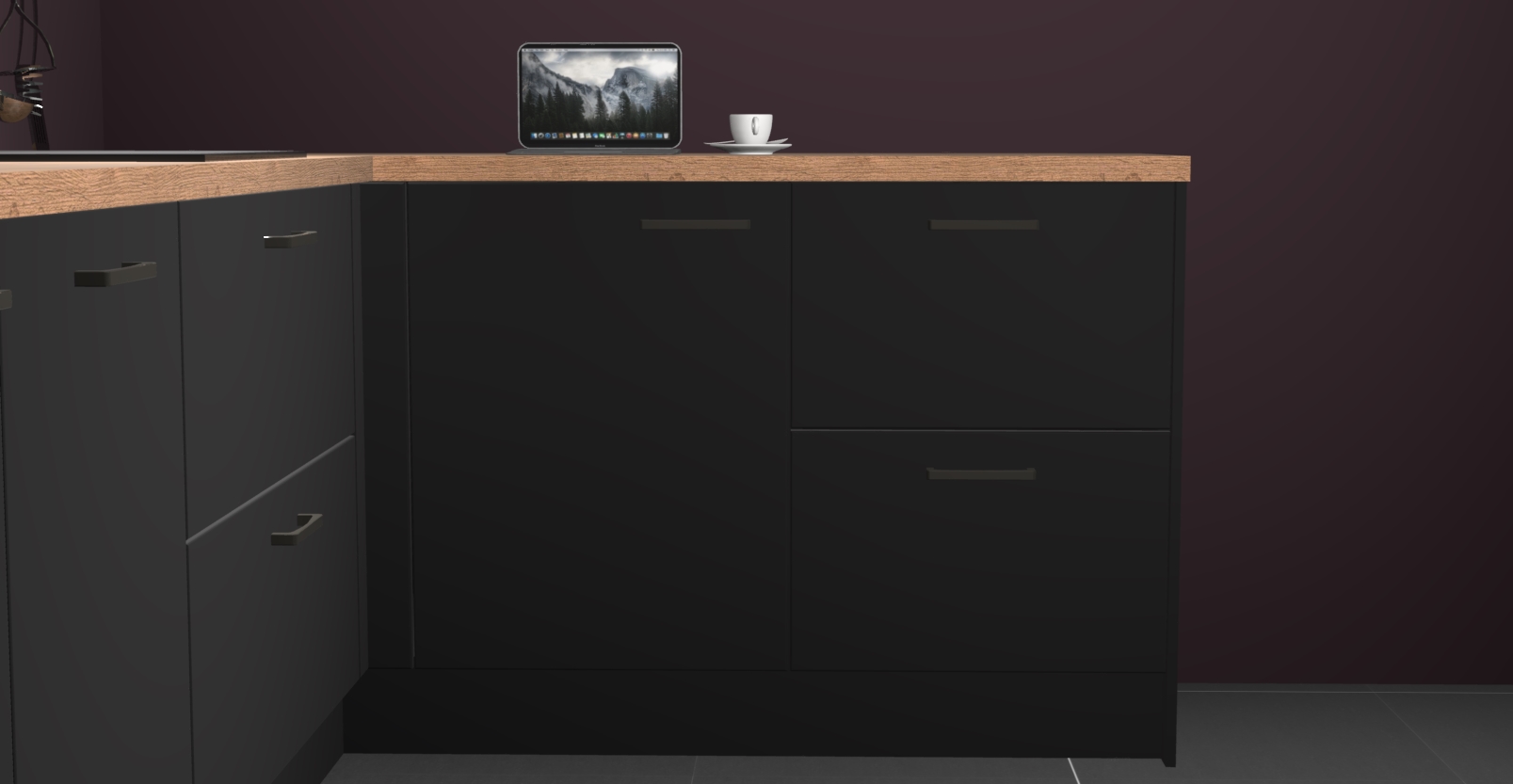 De Zwarte keuken Lille wordt geleverd met vijf inbouwapparaten - een oven, inductiekookplaat, afzuigkap, vaatwasser en koelkast. Maar dat is nog niet alles! Na bestelling kunnen deze apparaten eenvoudig worden geüpgraded naar premium AEG-apparatuur. Bovendien is er zelfs de optie om de oven te vervangen door een combimagnetron of uw inductiekookplaat te vervangen door een kookplaat met geïntegreerde afzuiging.