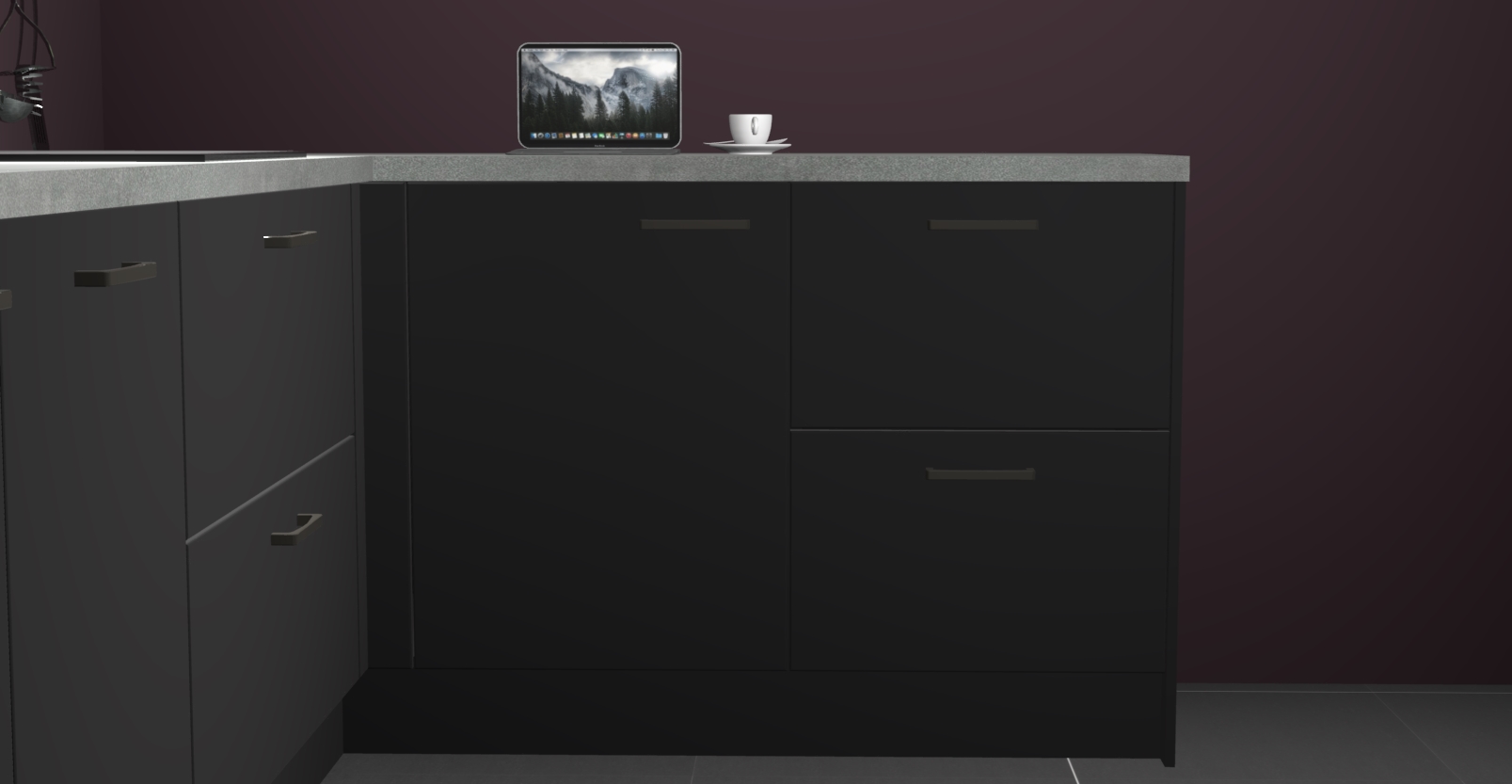 De Zwarte keuken Lille wordt geleverd met vijf inbouwapparaten - een oven, inductiekookplaat, afzuigkap, vaatwasser en koelkast. Maar dat is nog niet alles! Na bestelling kunnen deze apparaten eenvoudig worden geüpgraded naar premium AEG-apparatuur. Bovendien is er zelfs de optie om de oven te vervangen door een combimagnetron of uw inductiekookplaat te vervangen door een kookplaat met geïntegreerde afzuiging.