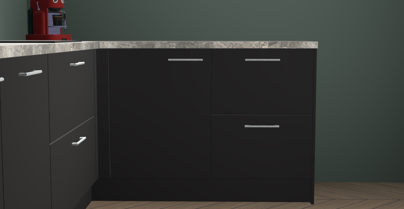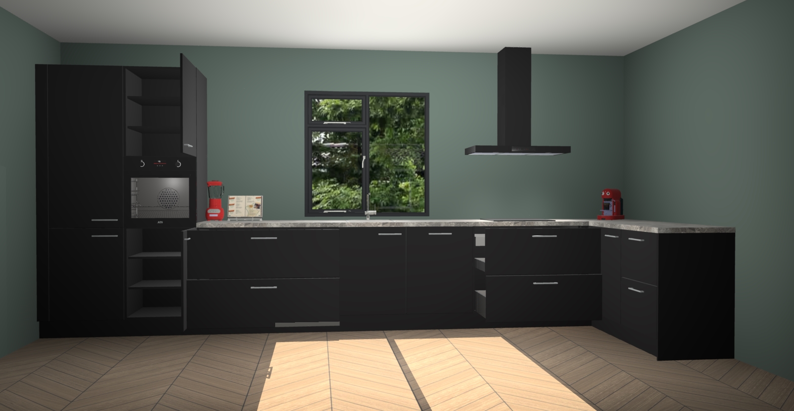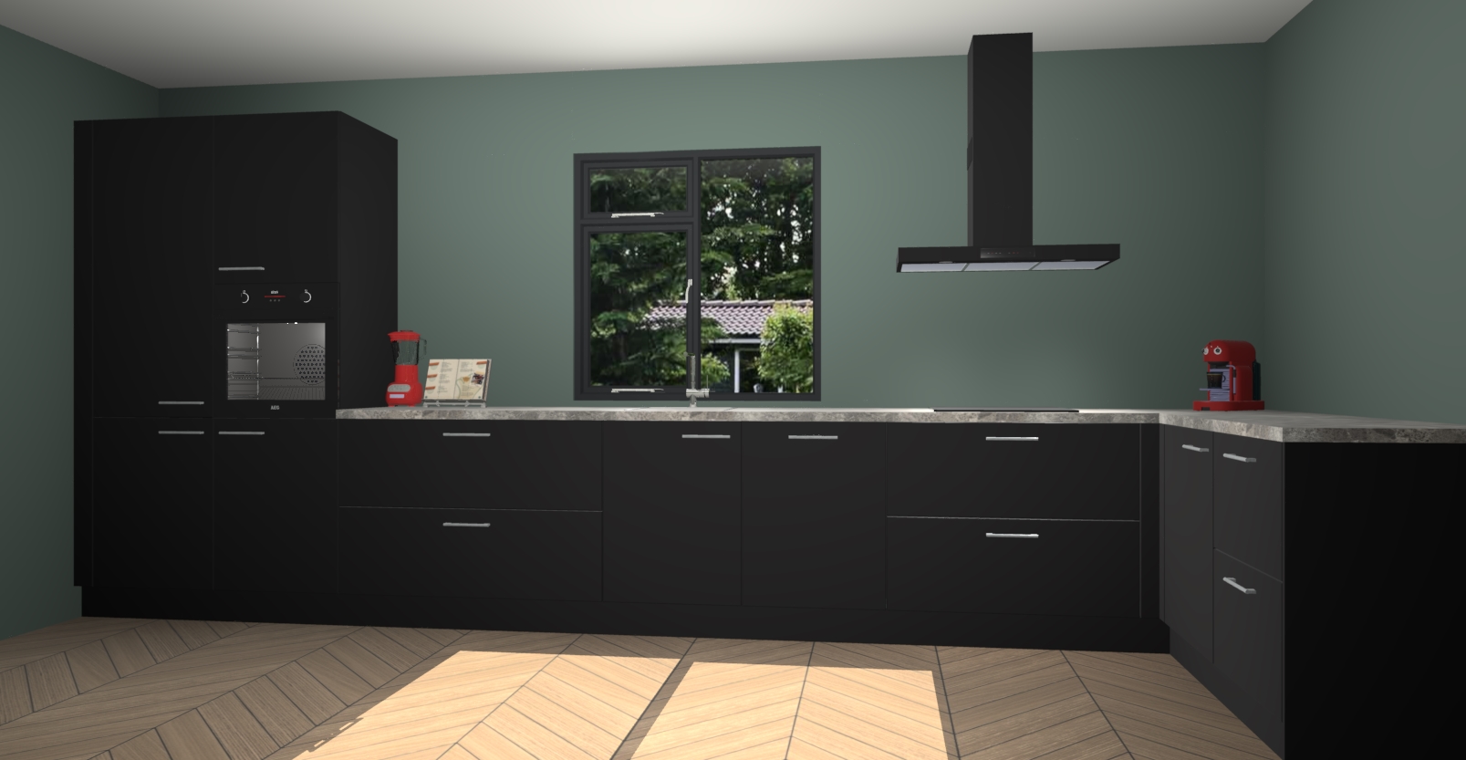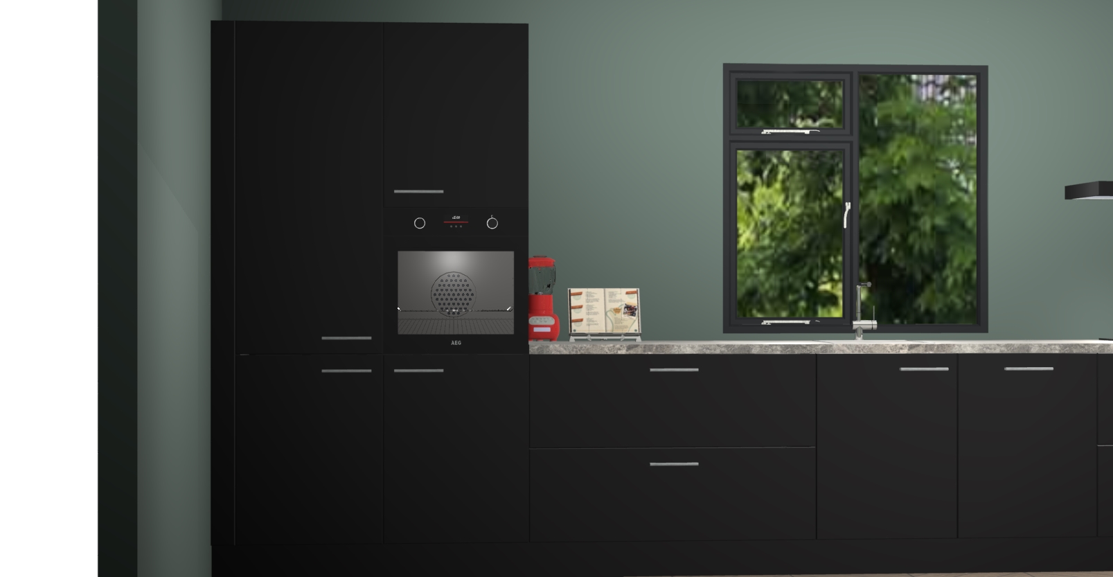 De Zwarte keuken Lille wordt geleverd met vijf inbouwapparaten - een oven, inductiekookplaat, afzuigkap, vaatwasser en koelkast. Maar dat is nog niet alles! Na bestelling kunnen deze apparaten eenvoudig worden geüpgraded naar premium AEG-apparatuur. Bovendien is er zelfs de optie om de oven te vervangen door een combimagnetron of uw inductiekookplaat te vervangen door een kookplaat met geïntegreerde afzuiging.