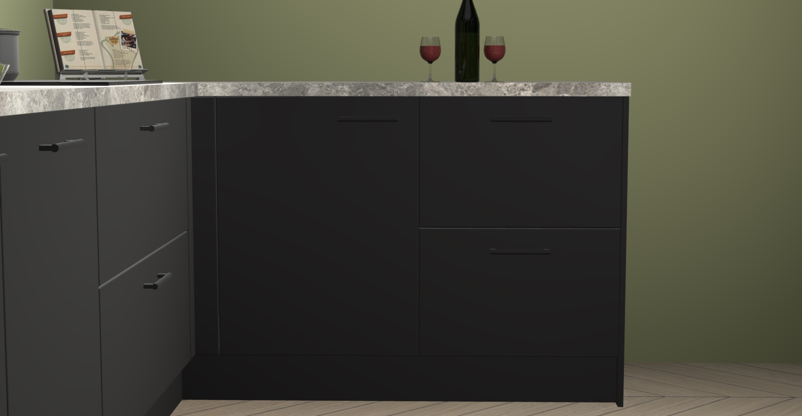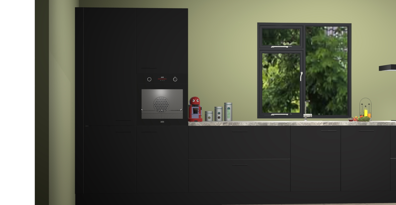 De Zwarte keuken Lille wordt geleverd met vijf inbouwapparaten - een oven, inductiekookplaat, afzuigkap, vaatwasser en koelkast. Maar dat is nog niet alles! Na bestelling kunnen deze apparaten eenvoudig worden geüpgraded naar premium AEG-apparatuur. Bovendien is er zelfs de optie om de oven te vervangen door een combimagnetron of uw inductiekookplaat te vervangen door een kookplaat met geïntegreerde afzuiging.