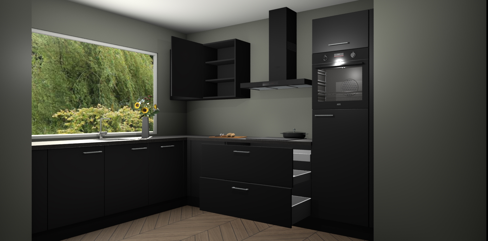 Bent u op zoek naar een onberispelijk keukenontwerp dat Duitse precisie en uitmuntende architectuur ademt? Zoek niet verder - de zwarte keuken Limonos biedt de perfecte moderne mix van stijl en functionaliteit.
