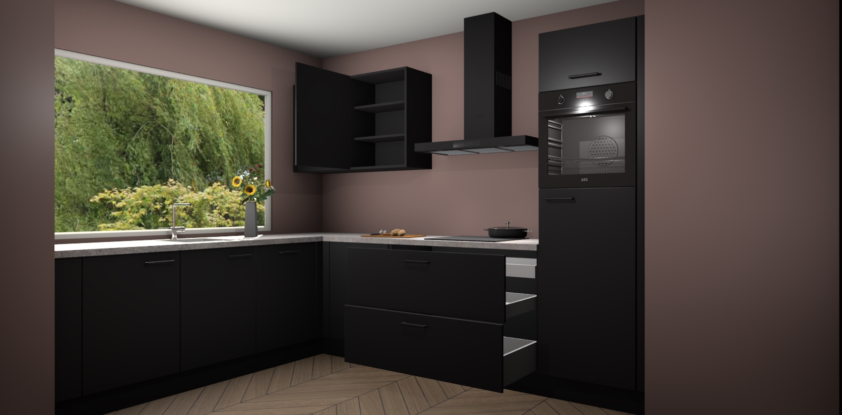 Bent u op zoek naar een onberispelijk keukenontwerp dat Duitse precisie en uitmuntende architectuur ademt? Zoek niet verder - de zwarte keuken Limonos biedt de perfecte moderne mix van stijl en functionaliteit.