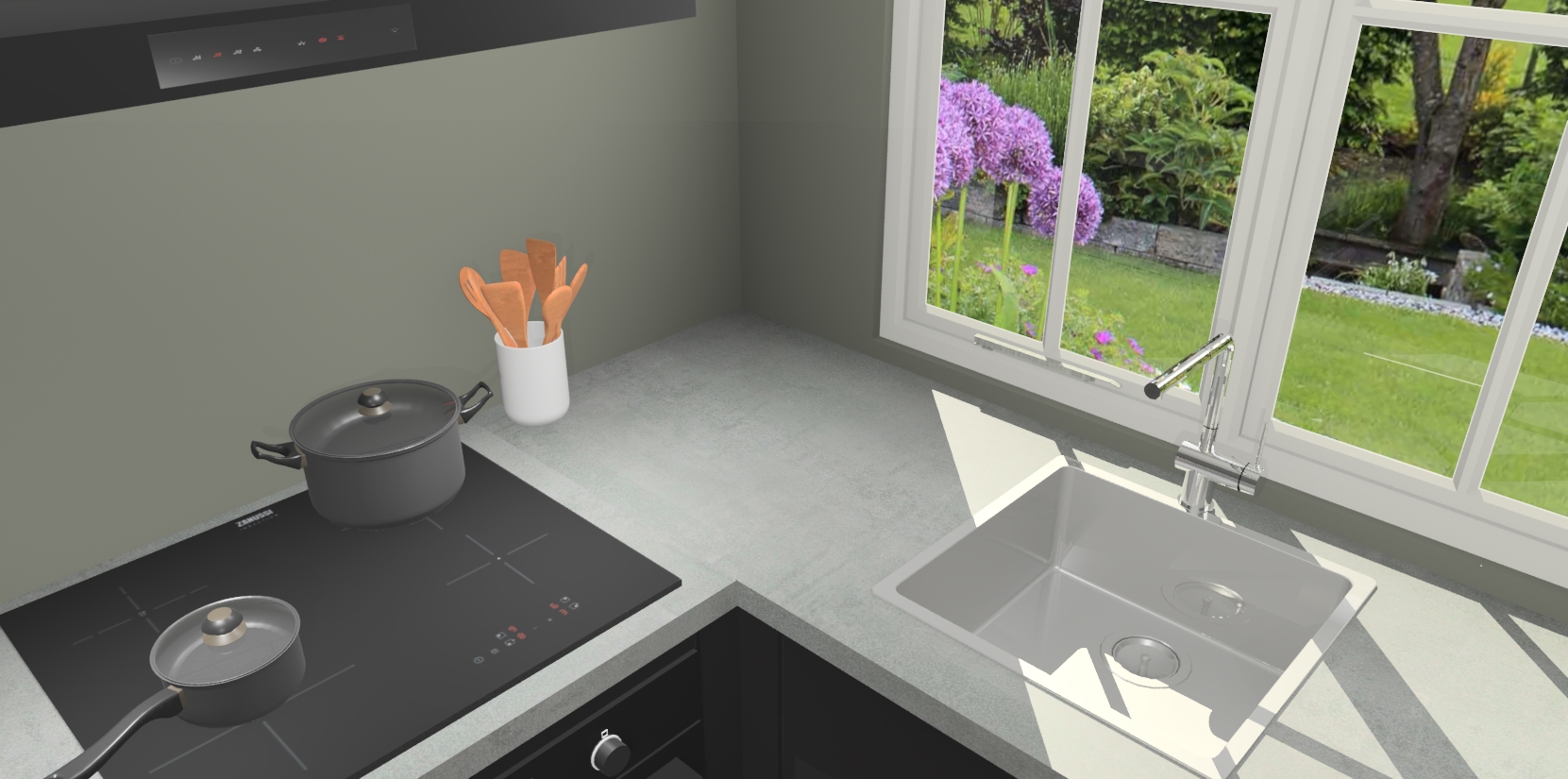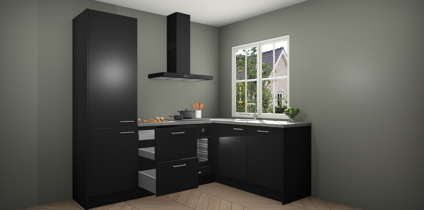 De Zwarte keuken Linz is de perfecte keuze voor uw nieuwe moderne en tijdloze keuken. Ga voor moderne en tijdloze elegantie in uw keuken. De prachtige hoekkeuken biedt een verfrissende kijk op de manier waarop we ons vertrouwde keukenontwerp kunnen aanpassen in een nieuwe stijl. Één blik om alles te zien: zo mooi dat het bijna magisch lijkt.
