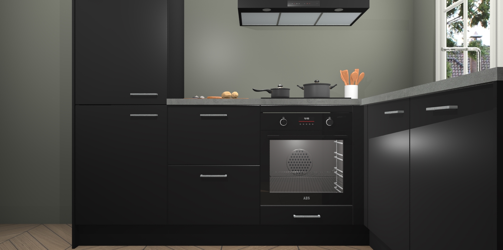 Met de Zwarte keuken Linz krijgt u 5 op maat gemaakte apparaten: een oven, inductiekookplaat, afzuigkap, vaatwasser en koelkast die na bestelling makkelijk worden geüpgraded naar AEG-producten. Met de zacht sluitende deuren, bent u verzekerd van eenvoudige bediening in stilte. Het kastmeubilair wordt alvast pre-assemblage geleverd waardoor u sneller met het installeren begint. Ook zijn alle deuren voorzien van softclose zodat er geen sporen op de lade blijven als u ze dicht doet. Bovendien hoeft u bij ons geen twijfels of verassingen te hebben: we hebben een vaste lage prijs waardoor u weet wat u mag verwachten bij elke bestelling.