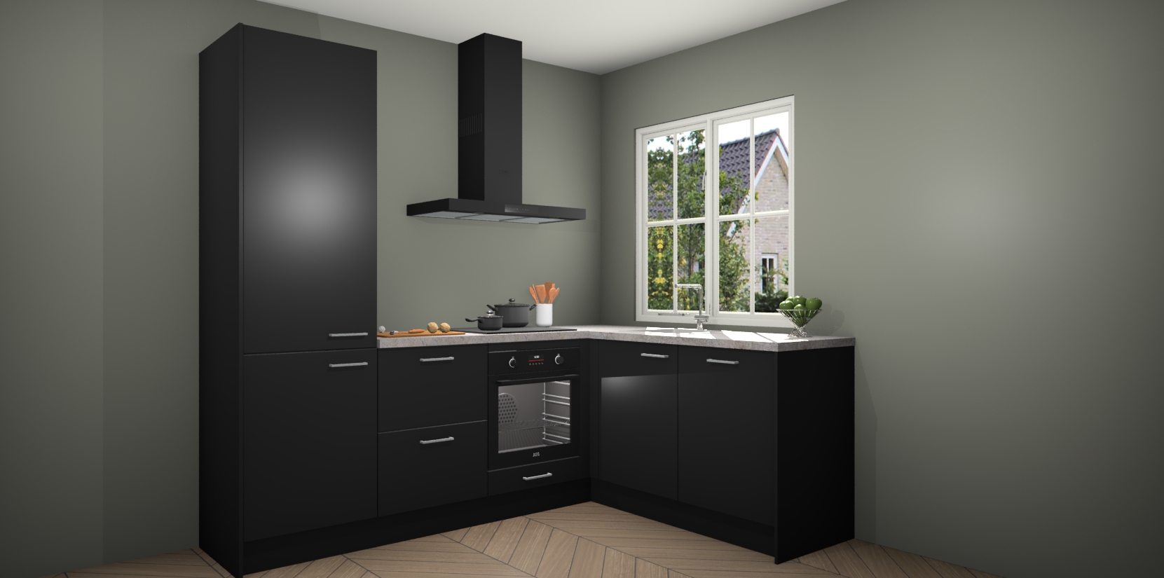 Met de Zwarte keuken Linz krijgt u 5 op maat gemaakte apparaten: een oven, inductiekookplaat, afzuigkap, vaatwasser en koelkast die na bestelling makkelijk worden geüpgraded naar AEG-producten. Met de zacht sluitende deuren, bent u verzekerd van eenvoudige bediening in stilte. Het kastmeubilair wordt alvast pre-assemblage geleverd waardoor u sneller met het installeren begint. Ook zijn alle deuren voorzien van softclose zodat er geen sporen op de lade blijven als u ze dicht doet. Bovendien hoeft u bij ons geen twijfels of verassingen te hebben: we hebben een vaste lage prijs waardoor u weet wat u mag verwachten bij elke bestelling.