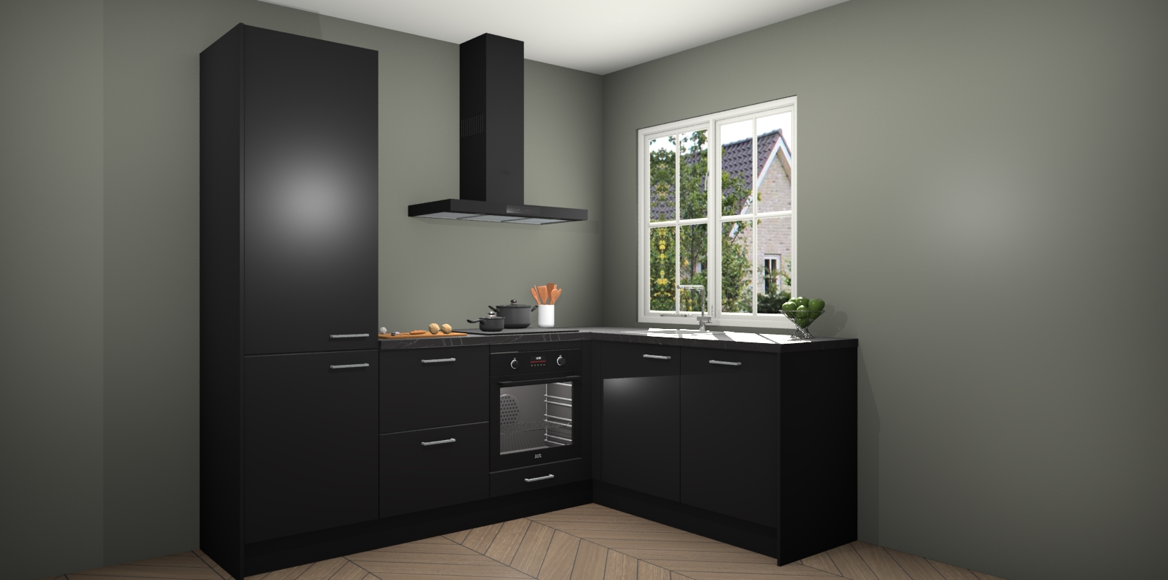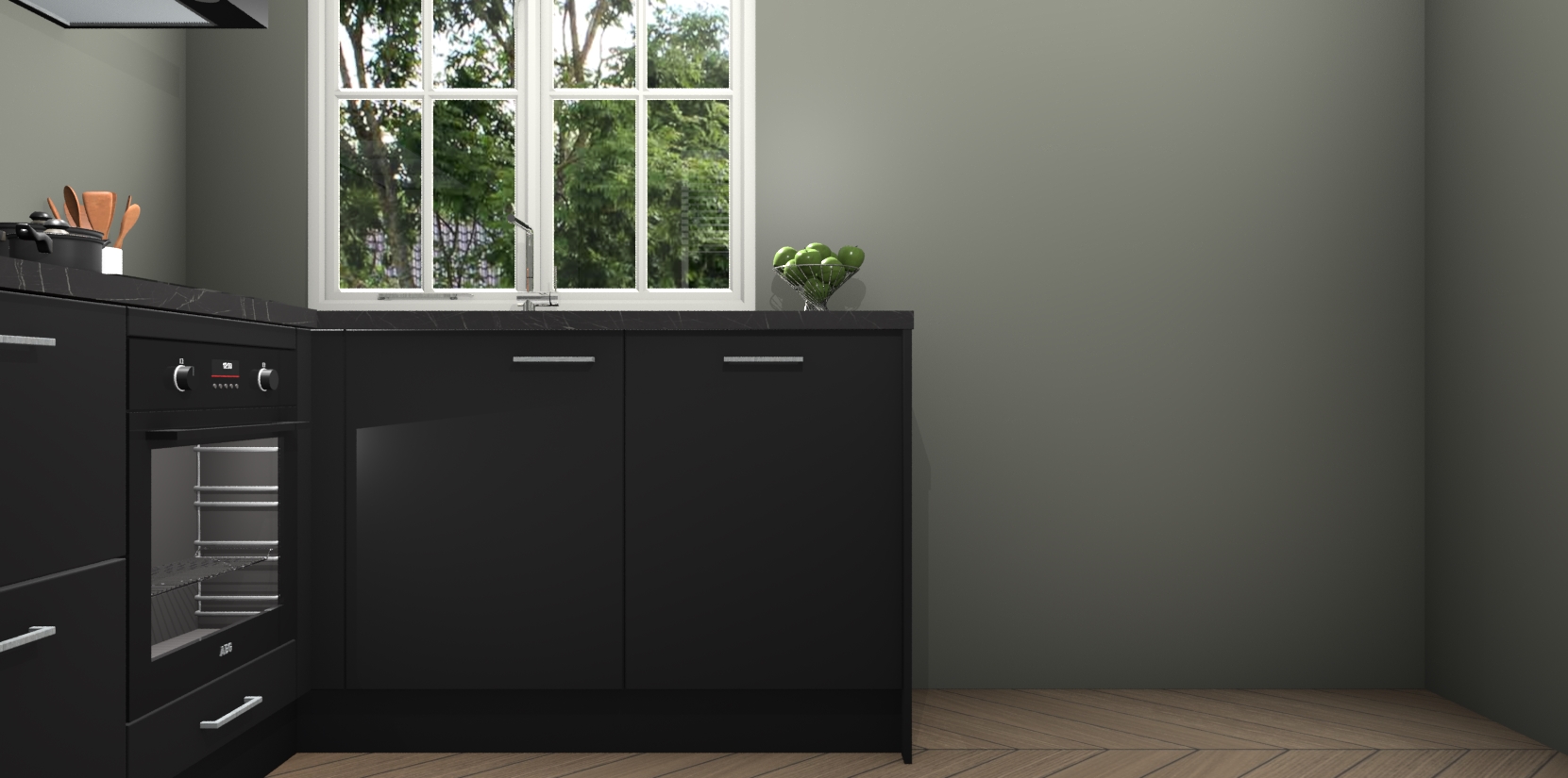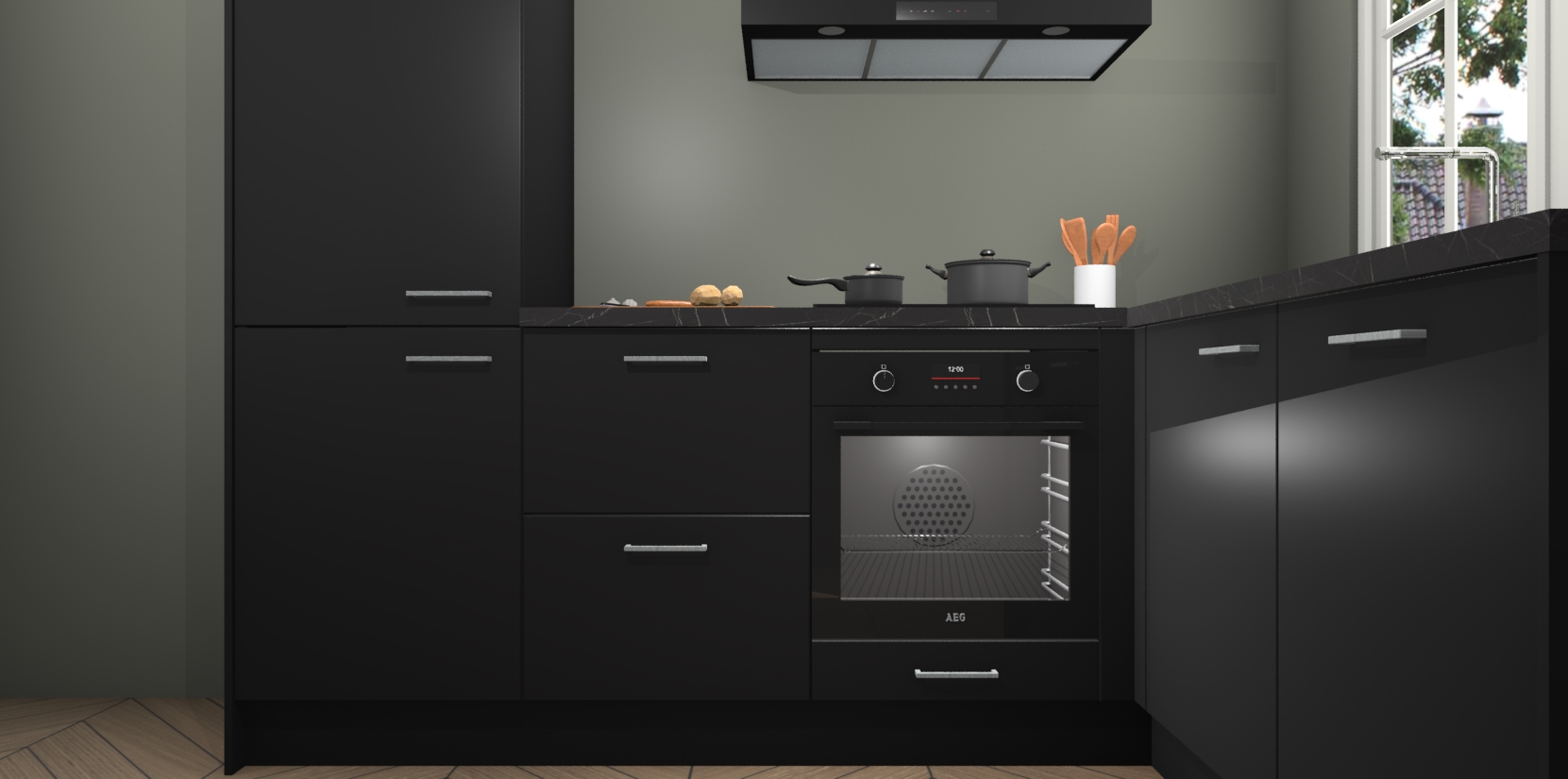 Met de Zwarte keuken Linz krijgt u 5 op maat gemaakte apparaten: een oven, inductiekookplaat, afzuigkap, vaatwasser en koelkast die na bestelling makkelijk worden geüpgraded naar AEG-producten. Met de zacht sluitende deuren, bent u verzekerd van eenvoudige bediening in stilte. Het kastmeubilair wordt alvast pre-assemblage geleverd waardoor u sneller met het installeren begint. Ook zijn alle deuren voorzien van softclose zodat er geen sporen op de lade blijven als u ze dicht doet. Bovendien hoeft u bij ons geen twijfels of verassingen te hebben: we hebben een vaste lage prijs waardoor u weet wat u mag verwachten bij elke bestelling.