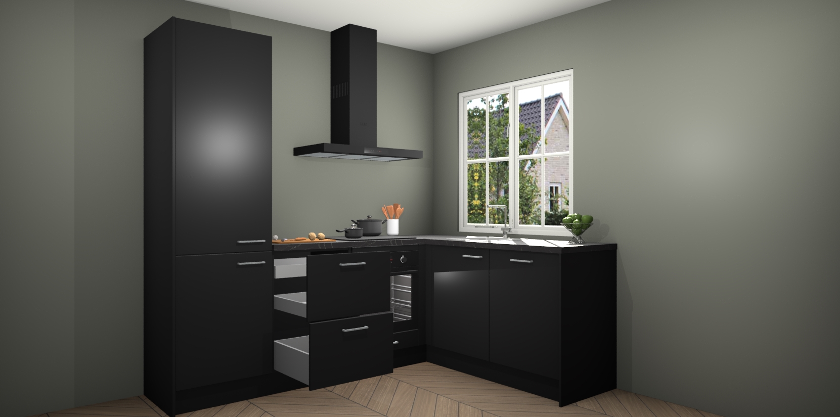 Het grote voordeel is dat uw Zwarte keuken Linz wordt geleverd met een beperkte levertijd van slechts 7 weken! Daarom moet u er snel bij zijn; want als u dit fantastische meubilair mist, kan niets anders dan spijt voelen. Ga direct aan de slag met uw droomkeuken door nu de Zwarte keuken Linz te bestellen - duizend woorden plaatjes in één woord: perfectie.