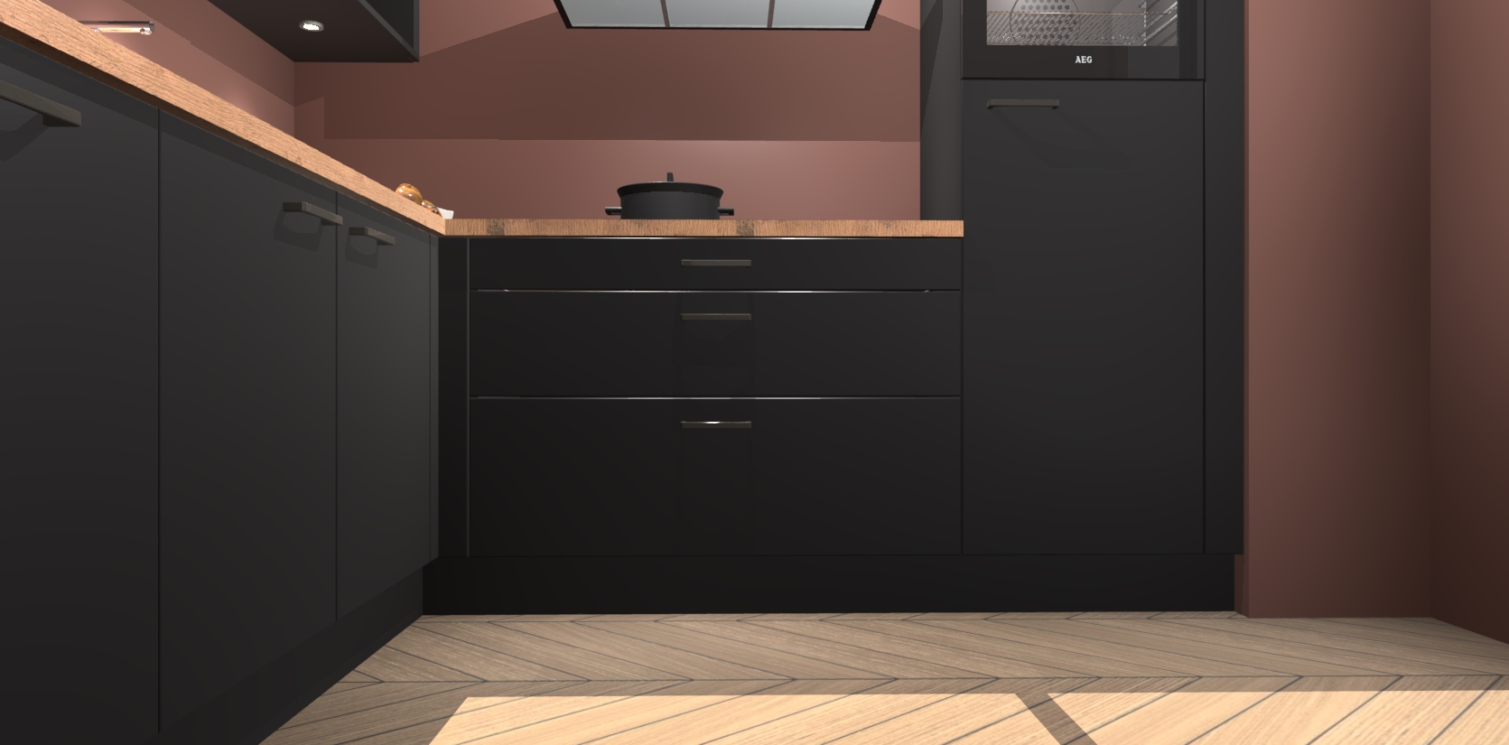Met een modern, tijdloos design en ruime opslagruimte, zult u zich in no-time thuis voelen in uw nieuwe keuken. Uw leven wordt eenvoudiger met de soft-close deuren die voor het ultieme stille comfort zorgen - geen geluid dat u stoort terwijl u kookt. Ook is de keuken voorzien van 5 ingebouwde apparaten: een oven, inductie kookplaat, afzuigkap, vaatwasser en koelkast. Deze kunnen gemakkelijk na bestelling worden bijgewerkt naar AEG - waardoor uw luxe ervaring compleet is.