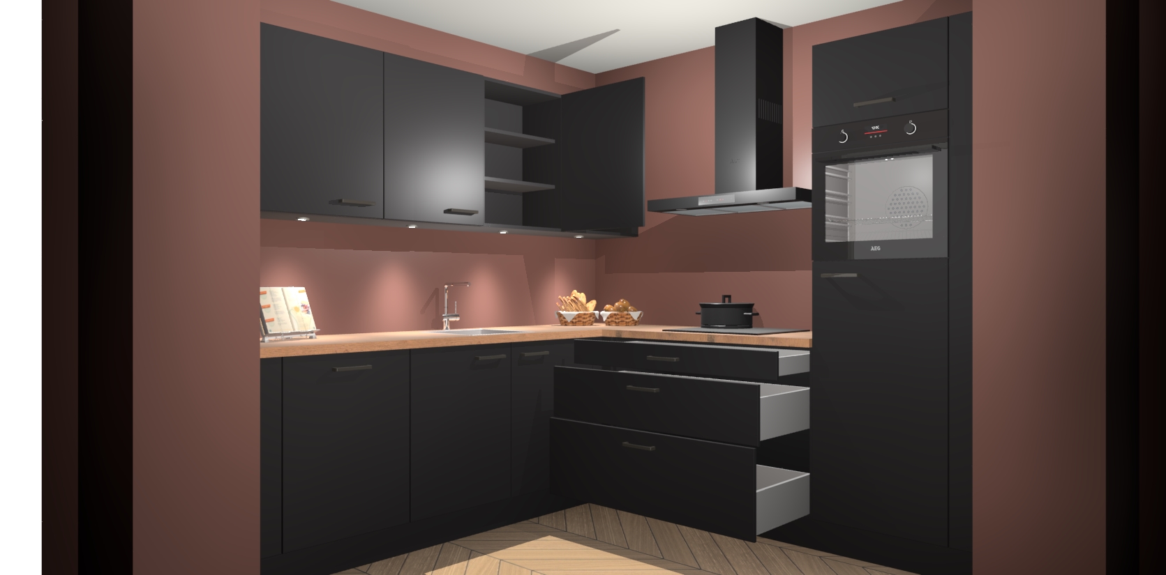Wij presenteren de revolutie in keukens: de Zwarte keuken Luanda. Met modern design, een tijdloos uiterlijk en kasten die al voor gemonteerd worden geleverd, laat deze stijlvolle keuken uw kookervaring op een hele nieuwe manier transformeren.