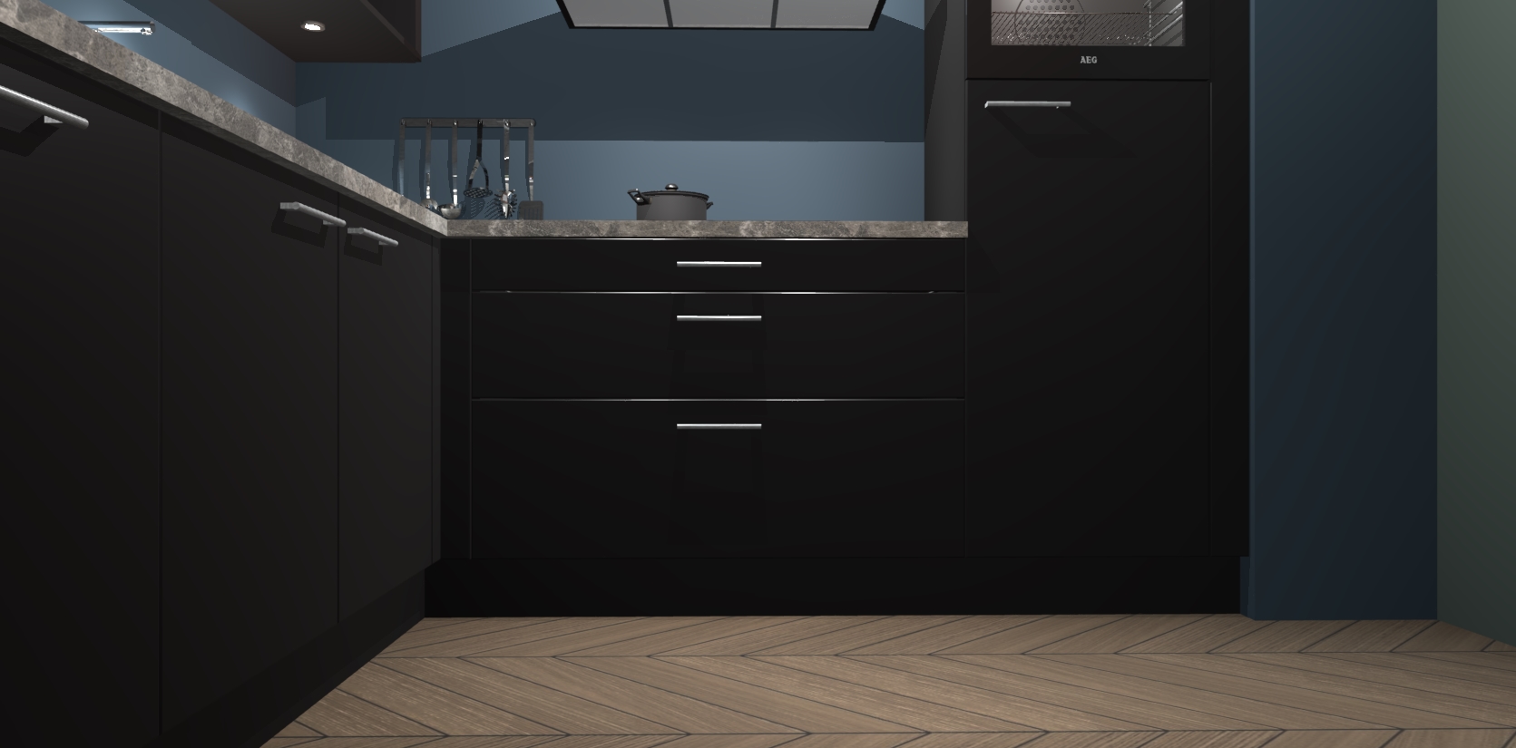 Met een modern, tijdloos design en ruime opslagruimte, zult u zich in no-time thuis voelen in uw nieuwe keuken. Uw leven wordt eenvoudiger met de soft-close deuren die voor het ultieme stille comfort zorgen - geen geluid dat u stoort terwijl u kookt. Ook is de keuken voorzien van 5 ingebouwde apparaten: een oven, inductie kookplaat, afzuigkap, vaatwasser en koelkast. Deze kunnen gemakkelijk na bestelling worden bijgewerkt naar AEG - waardoor uw luxe ervaring compleet is.