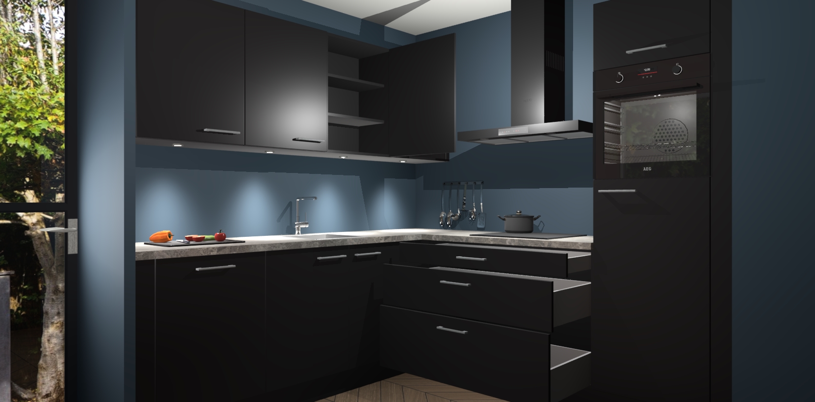 Wij presenteren de revolutie in keukens: de Zwarte keuken Luanda. Met modern design, een tijdloos uiterlijk en kasten die al voor gemonteerd worden geleverd, laat deze stijlvolle keuken uw kookervaring op een hele nieuwe manier transformeren.