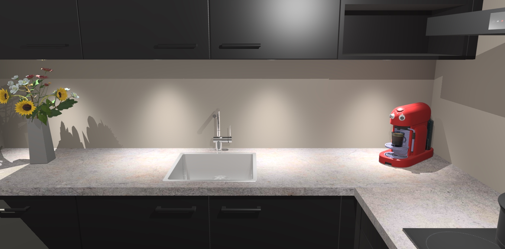 - De spoelbak is nog niet in gevreesd, dit dient tijdens het werk gedaan te worden