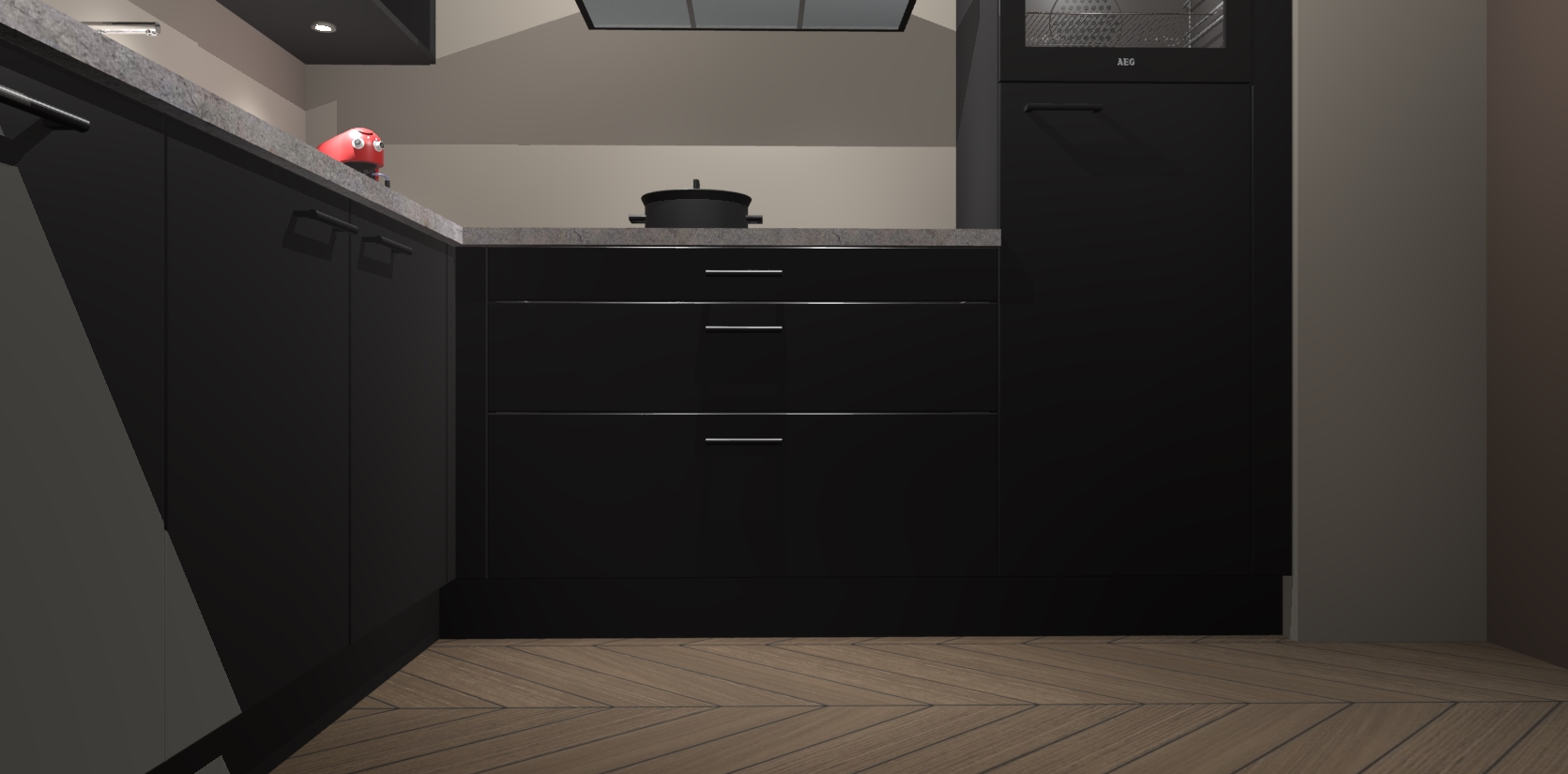 Met een modern, tijdloos design en ruime opslagruimte, zult u zich in no-time thuis voelen in uw nieuwe keuken. Uw leven wordt eenvoudiger met de soft-close deuren die voor het ultieme stille comfort zorgen - geen geluid dat u stoort terwijl u kookt. Ook is de keuken voorzien van 5 ingebouwde apparaten: een oven, inductie kookplaat, afzuigkap, vaatwasser en koelkast. Deze kunnen gemakkelijk na bestelling worden bijgewerkt naar AEG - waardoor uw luxe ervaring compleet is.