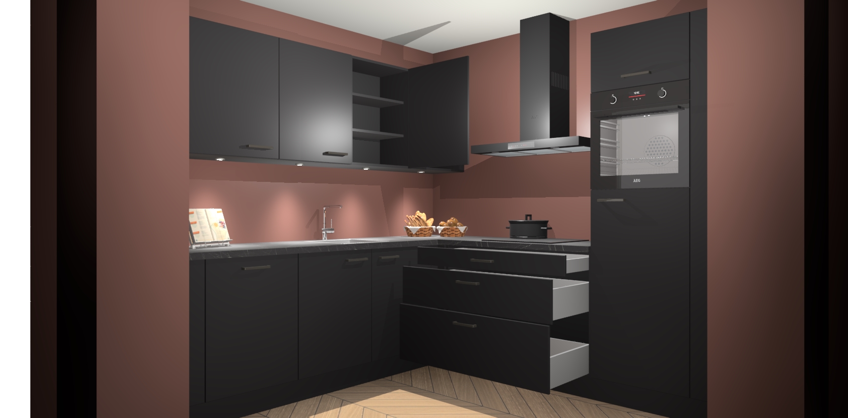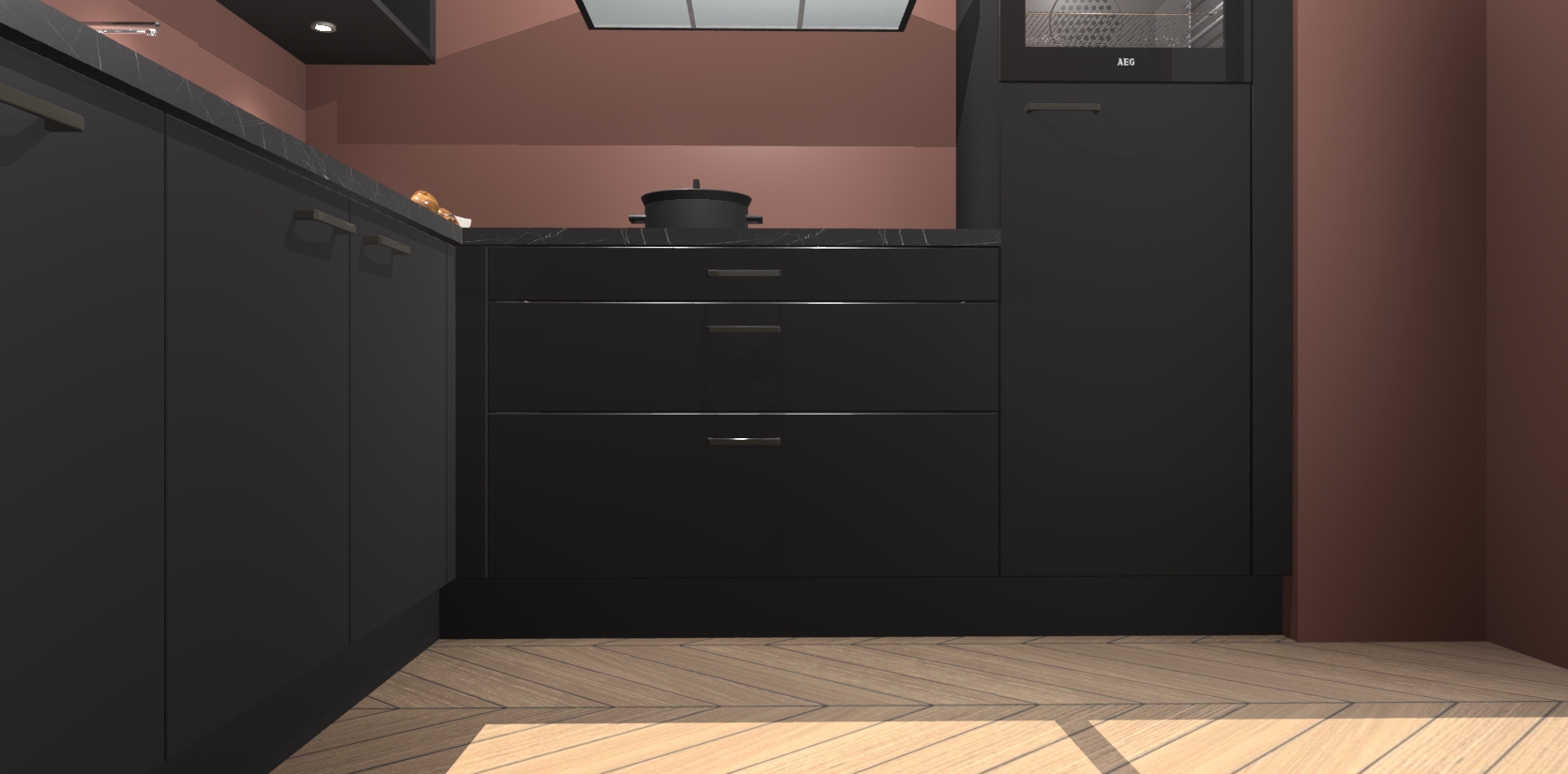 Met een modern, tijdloos design en ruime opslagruimte, zult u zich in no-time thuis voelen in uw nieuwe keuken. Uw leven wordt eenvoudiger met de soft-close deuren die voor het ultieme stille comfort zorgen - geen geluid dat u stoort terwijl u kookt. Ook is de keuken voorzien van 5 ingebouwde apparaten: een oven, inductie kookplaat, afzuigkap, vaatwasser en koelkast. Deze kunnen gemakkelijk na bestelling worden bijgewerkt naar AEG - waardoor uw luxe ervaring compleet is.