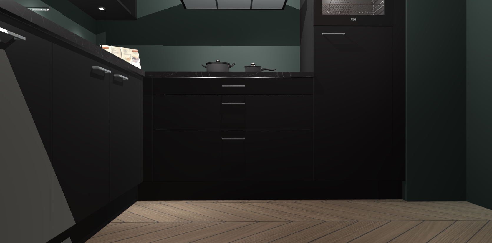 Met een modern, tijdloos design en ruime opslagruimte, zult u zich in no-time thuis voelen in uw nieuwe keuken. Uw leven wordt eenvoudiger met de soft-close deuren die voor het ultieme stille comfort zorgen - geen geluid dat u stoort terwijl u kookt. Ook is de keuken voorzien van 5 ingebouwde apparaten: een oven, inductie kookplaat, afzuigkap, vaatwasser en koelkast. Deze kunnen gemakkelijk na bestelling worden bijgewerkt naar AEG - waardoor uw luxe ervaring compleet is.