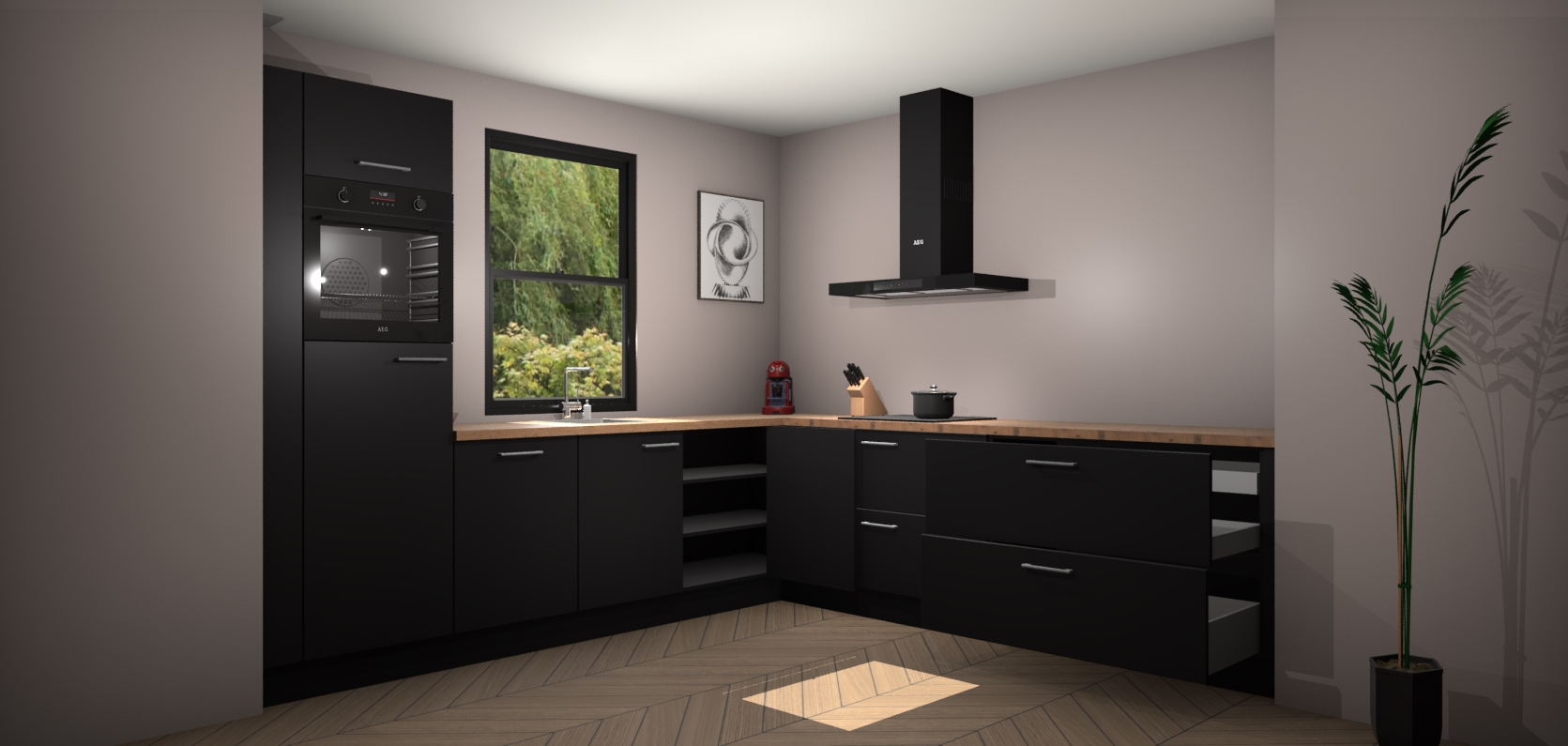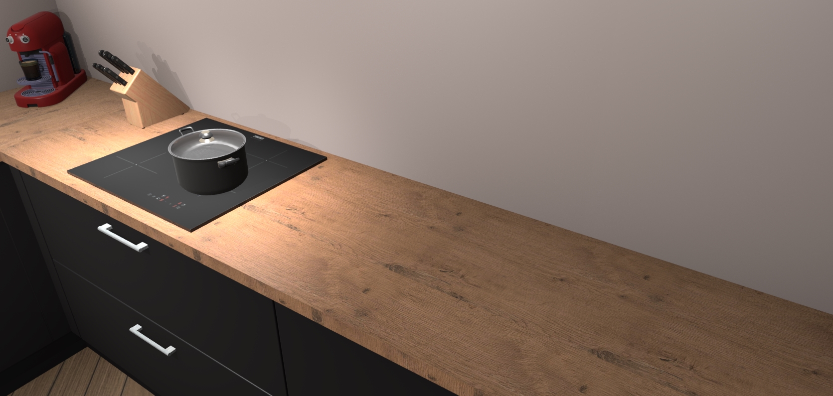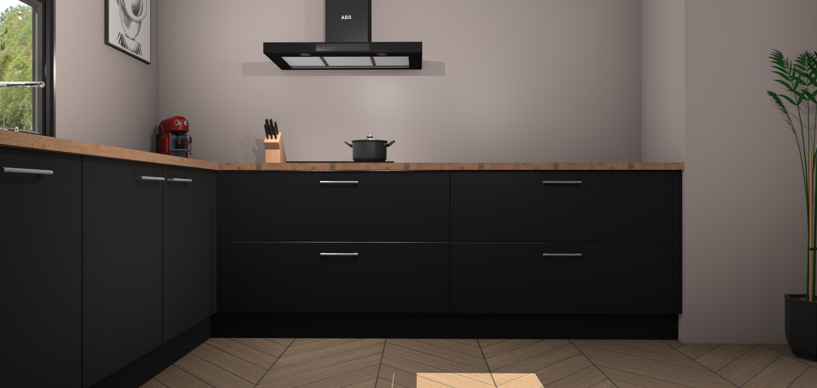 Inclusief plinten, stelpoten en werkblad