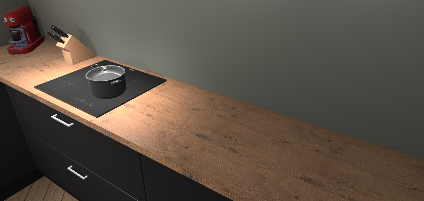 - Bij een hoekwerkblad zijn de hoeken in gevreesd en op maat gemaakt