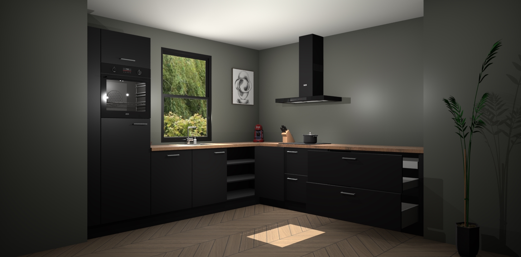 Welkom bij de zwarte keuken Lublin. Deze prachtige keuken zal de komende jaren het middelpunt van de belangstelling in uw huis zijn. Uitgerust met vijf inbouwapparaten komt u nooit kookgereedschap tekort. Bovendien geeft de warme houtlook elke ruimte een uitnodigende en tijdloze uitstraling.