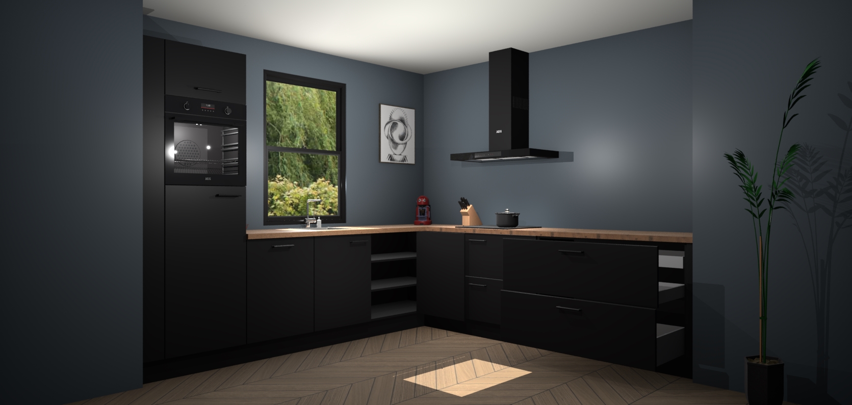 Welkom bij de zwarte keuken Lublin. Deze prachtige keuken zal de komende jaren het middelpunt van de belangstelling in uw huis zijn. Uitgerust met vijf inbouwapparaten komt u nooit kookgereedschap tekort. Bovendien geeft de warme houtlook elke ruimte een uitnodigende en tijdloze uitstraling.