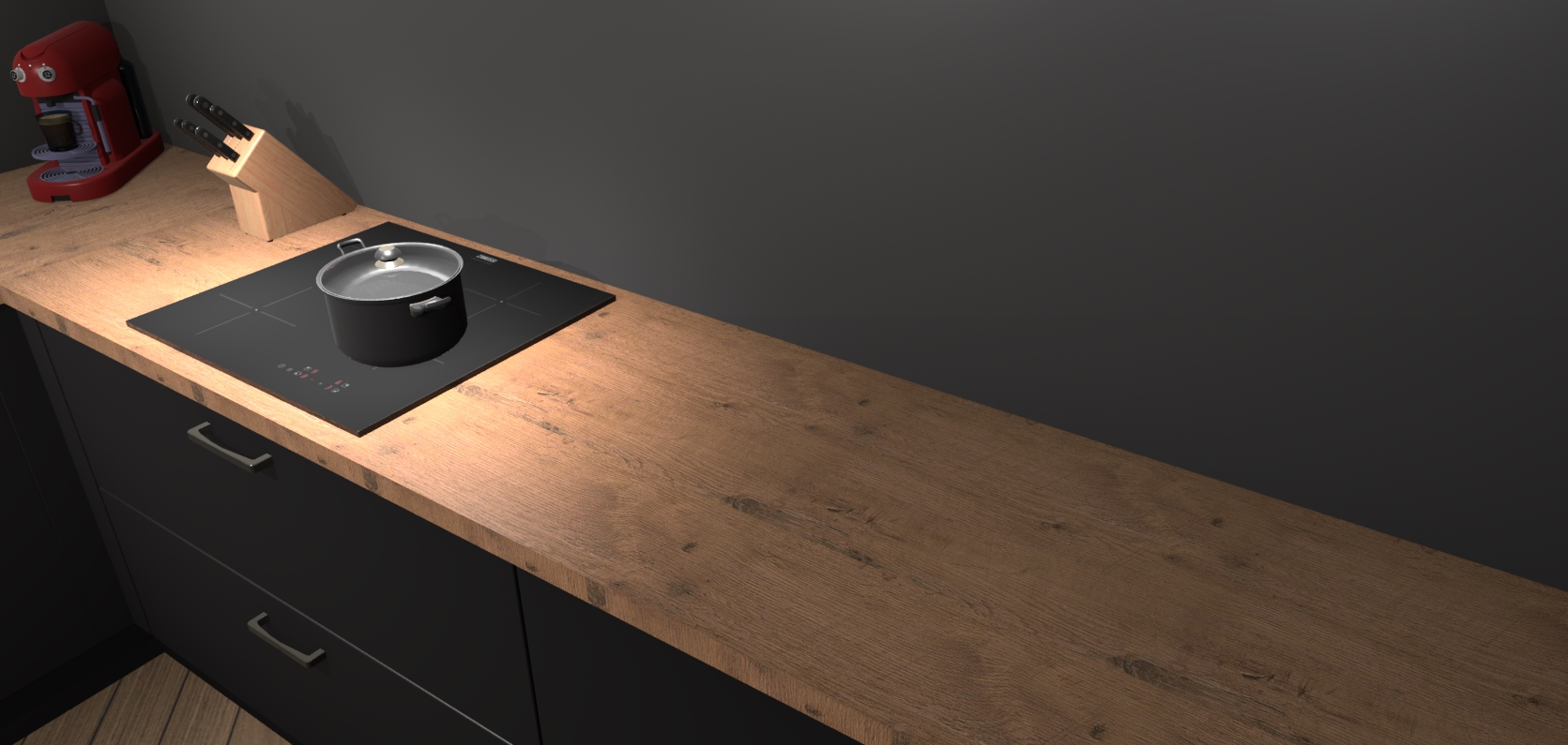 - Bij een hoekwerkblad zijn de hoeken in gevreesd en op maat gemaakt