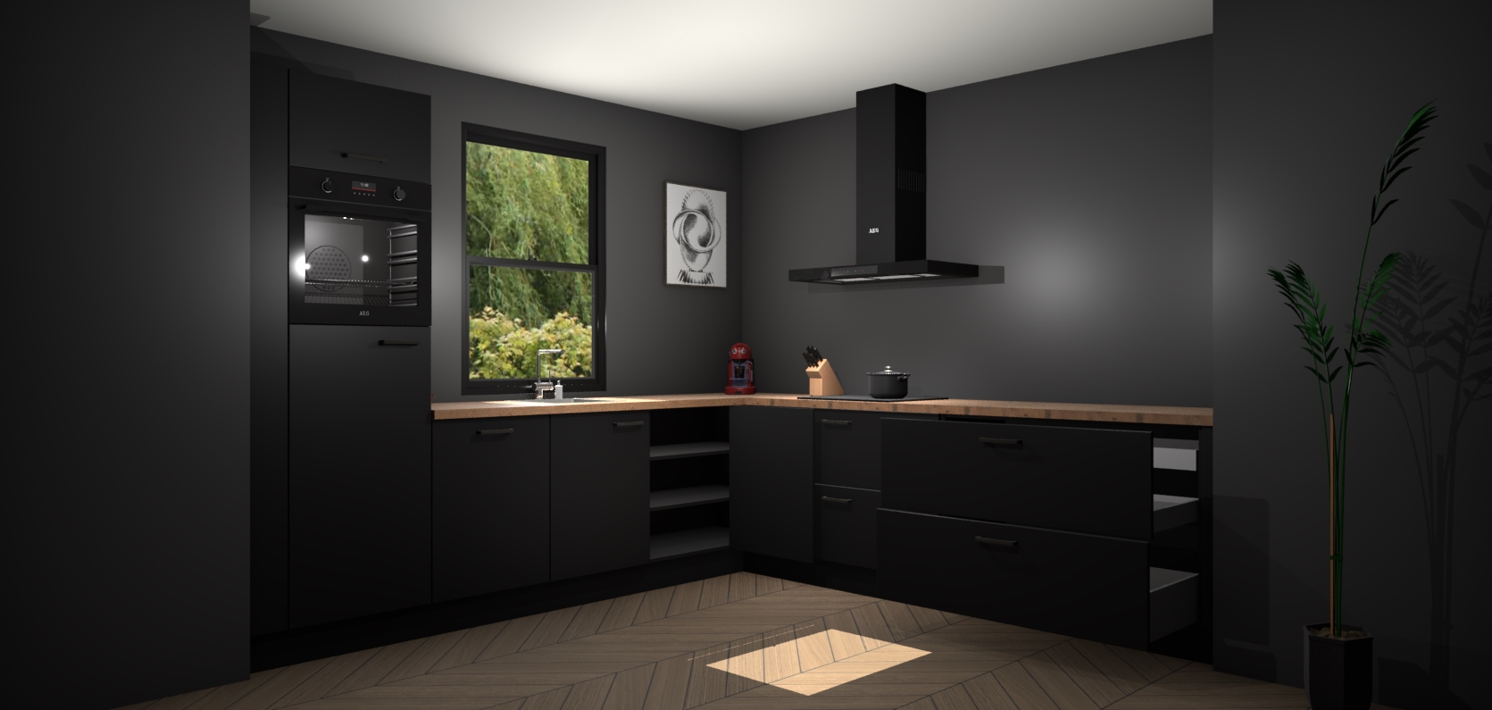 Welkom bij de zwarte keuken Lublin. Deze prachtige keuken zal de komende jaren het middelpunt van de belangstelling in uw huis zijn. Uitgerust met vijf inbouwapparaten komt u nooit kookgereedschap tekort. Bovendien geeft de warme houtlook elke ruimte een uitnodigende en tijdloze uitstraling.