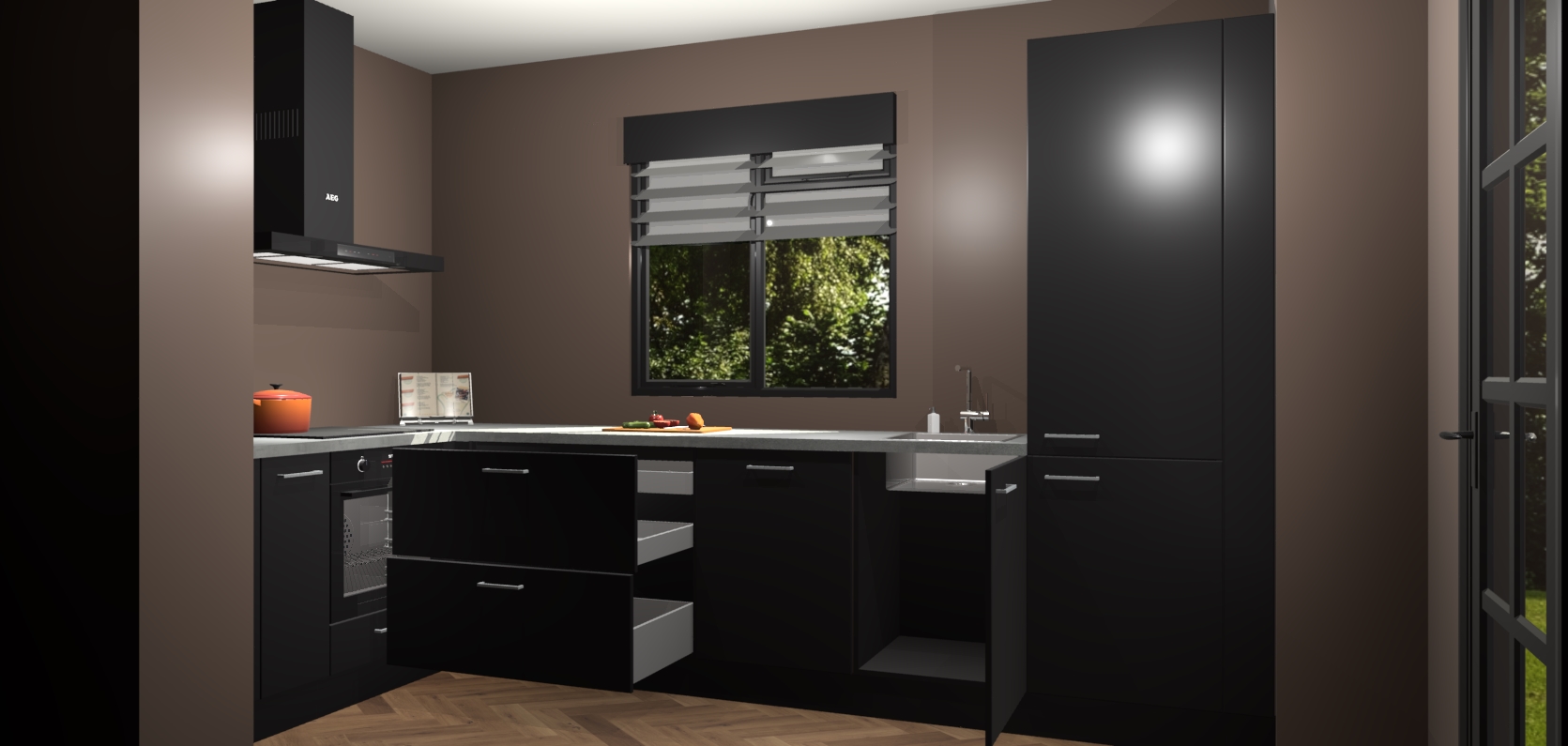 Moedige modernisten! De Zwarte keuken Luzern is het perfecte antwoord op al uw keukendromen. Dit geraffineerde, tijdloze ontwerp combineert strakke kasten zodat u die dure look krijgt zonder het dure prijskaartje. We weten dat planning en uitvoering de sleutels zijn tot een geslaagde keukenrenovatie, dus hebben we ervoor gezorgd dat we vijf inbouwapparaten in ons pakket hebben: een oven, inductiekookplaat, afzuigkap, vaatwasser en koelkast. Deze kunnen na bestelling gemakkelijk worden uitgebreid voor nog meer gemak.