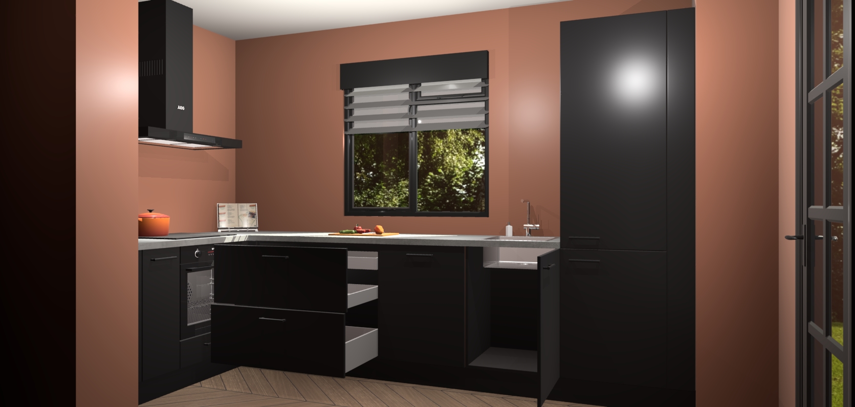 Moedige modernisten! De Zwarte keuken Luzern is het perfecte antwoord op al uw keukendromen. Dit geraffineerde, tijdloze ontwerp combineert strakke kasten zodat u die dure look krijgt zonder het dure prijskaartje. We weten dat planning en uitvoering de sleutels zijn tot een geslaagde keukenrenovatie, dus hebben we ervoor gezorgd dat we vijf inbouwapparaten in ons pakket hebben: een oven, inductiekookplaat, afzuigkap, vaatwasser en koelkast. Deze kunnen na bestelling gemakkelijk worden uitgebreid voor nog meer gemak.