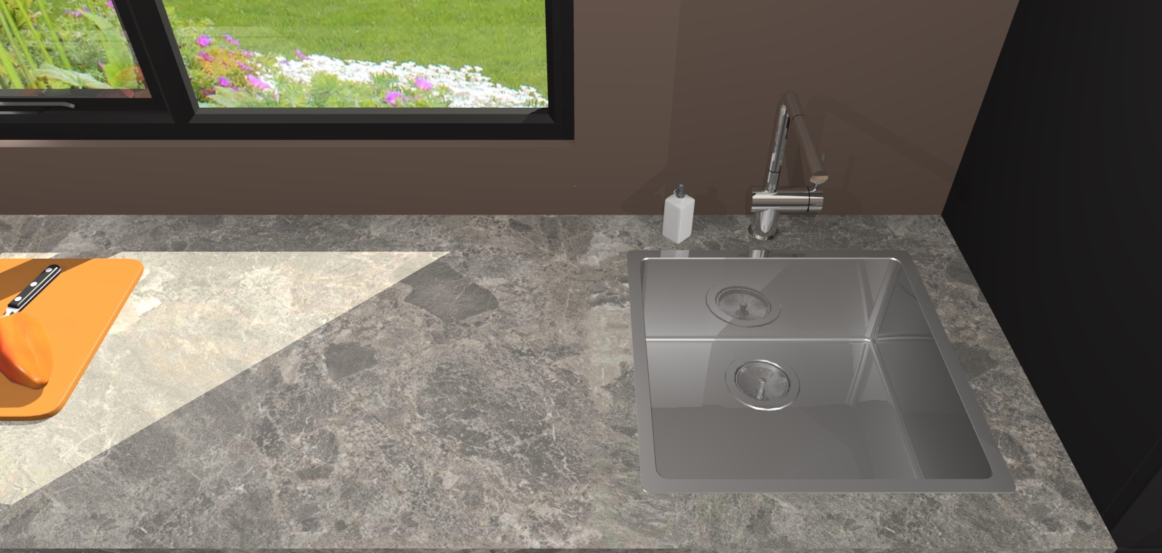 • De spoelbak is nog niet in gevreesd. Dit dient tijdens het werk gedaan te worden
