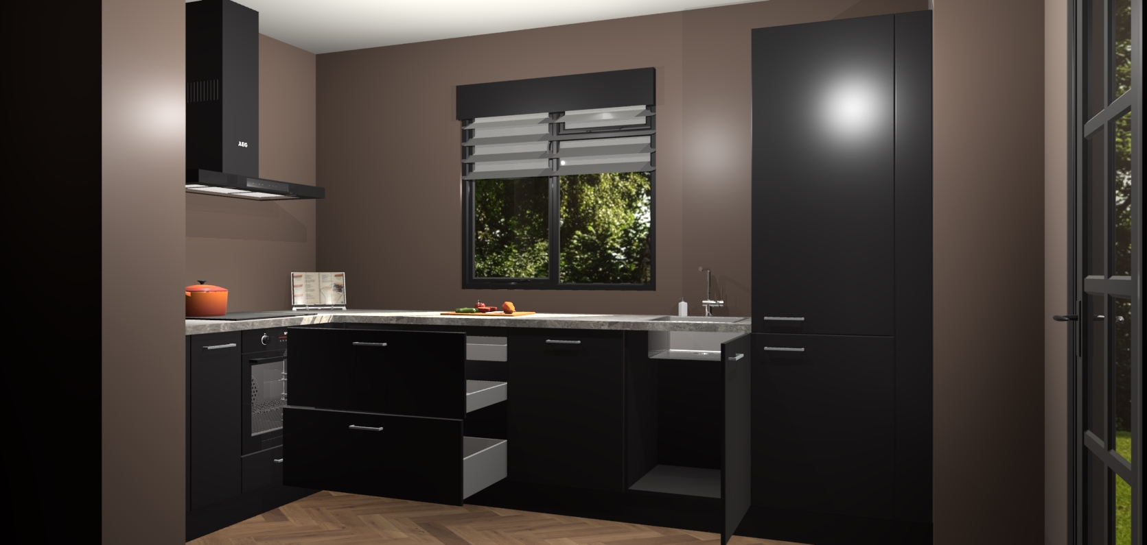 Moedige modernisten! De Zwarte keuken Luzern is het perfecte antwoord op al uw keukendromen. Dit geraffineerde, tijdloze ontwerp combineert strakke kasten zodat u die dure look krijgt zonder het dure prijskaartje. We weten dat planning en uitvoering de sleutels zijn tot een geslaagde keukenrenovatie, dus hebben we ervoor gezorgd dat we vijf inbouwapparaten in ons pakket hebben: een oven, inductiekookplaat, afzuigkap, vaatwasser en koelkast. Deze kunnen na bestelling gemakkelijk worden uitgebreid voor nog meer gemak.