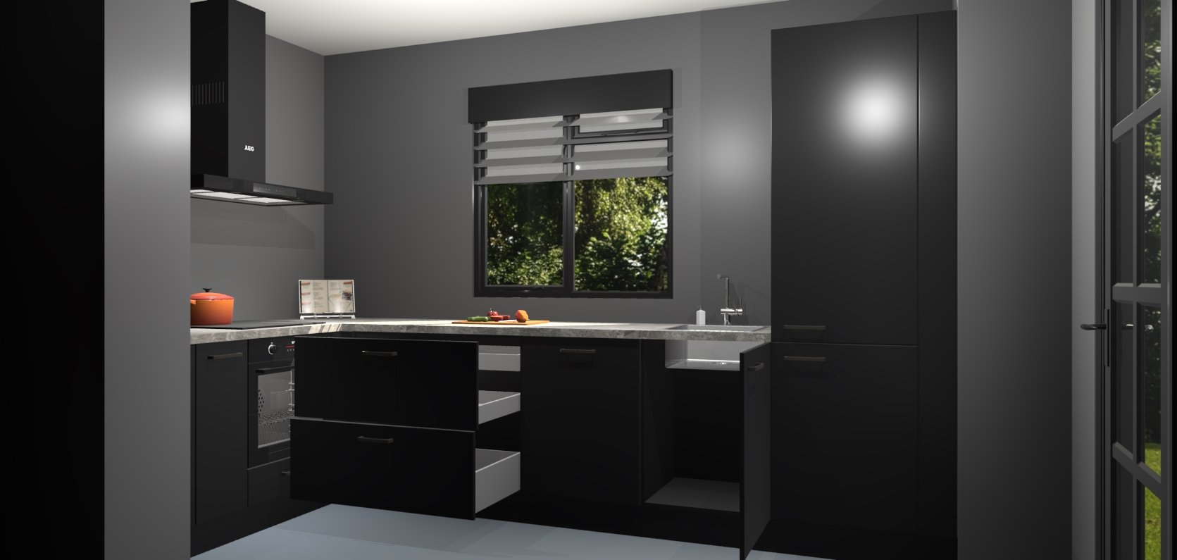Moedige modernisten! De Zwarte keuken Luzern is het perfecte antwoord op al uw keukendromen. Dit geraffineerde, tijdloze ontwerp combineert strakke kasten zodat u die dure look krijgt zonder het dure prijskaartje. We weten dat planning en uitvoering de sleutels zijn tot een geslaagde keukenrenovatie, dus hebben we ervoor gezorgd dat we vijf inbouwapparaten in ons pakket hebben: een oven, inductiekookplaat, afzuigkap, vaatwasser en koelkast. Deze kunnen na bestelling gemakkelijk worden uitgebreid voor nog meer gemak.