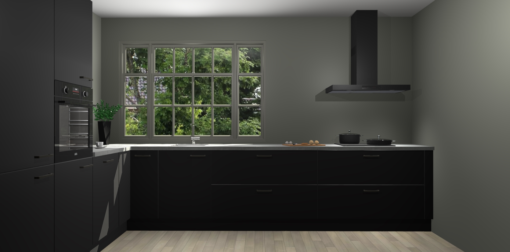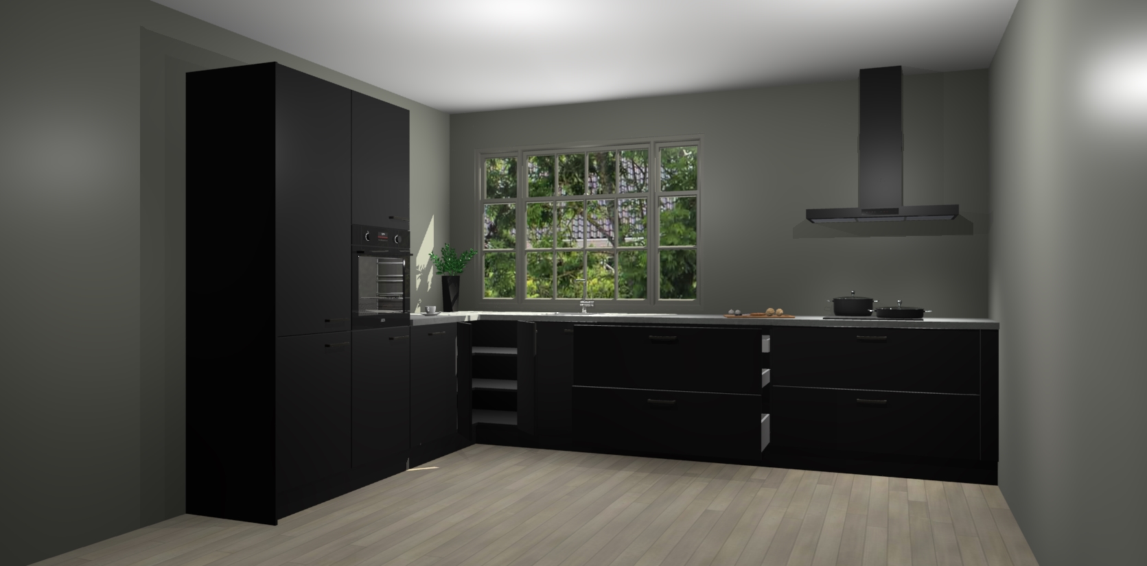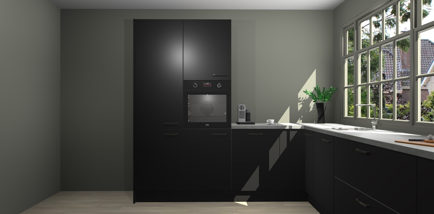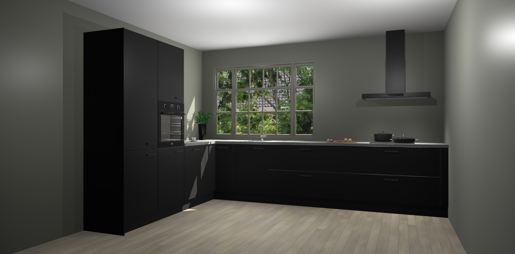 Kom dichtbij de perfecte keuken van uw dromen met de Zwarte keuken Malaga. Met een prachtige houtlook en eigentijds ontwerp, straalt deze keuken warmte en sfeer uit. Of u nu liefhebber bent van traditionele of moderne stijlen, er is genoeg ruimte om aan al uw behoeften te voldoen.