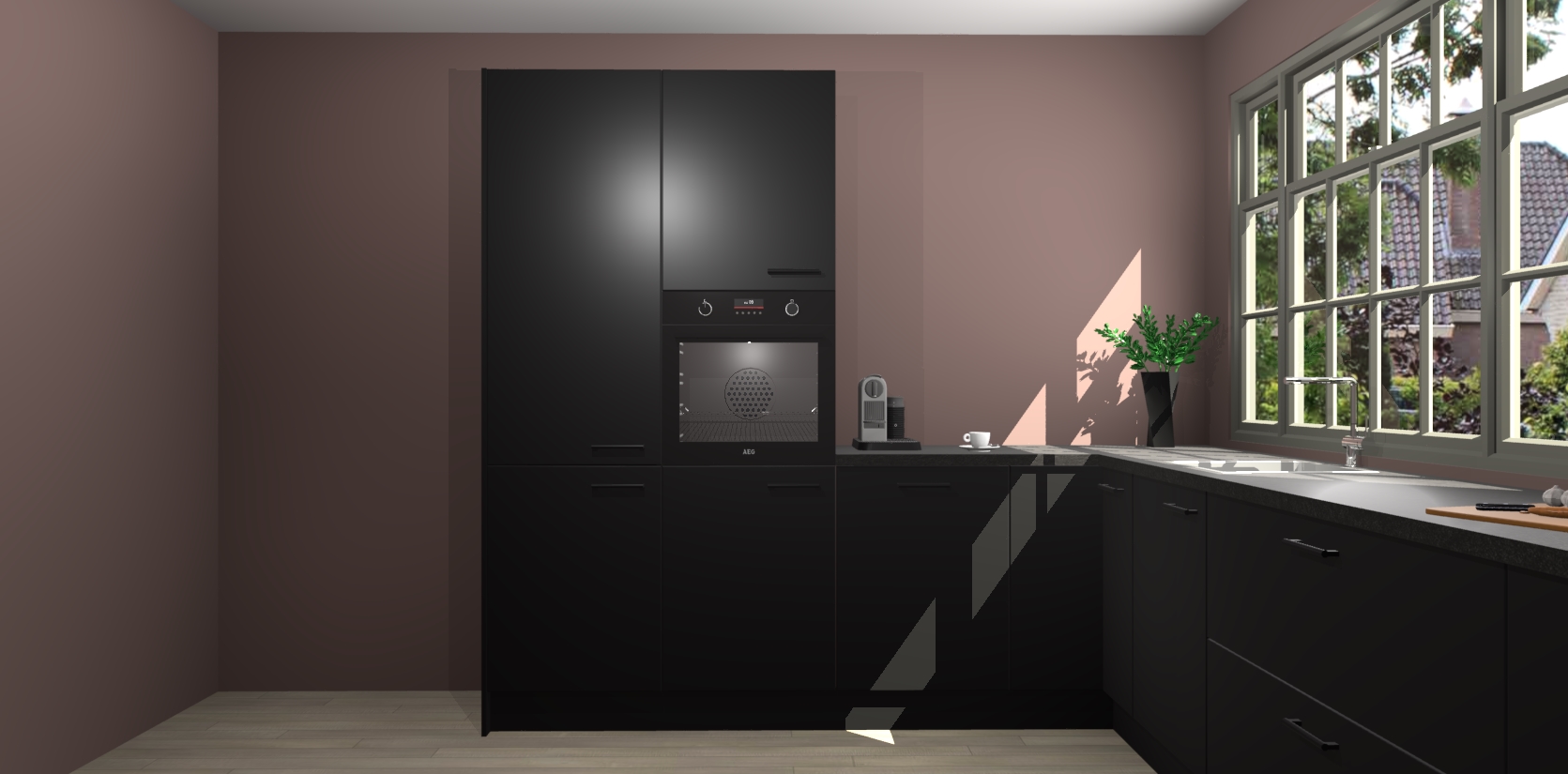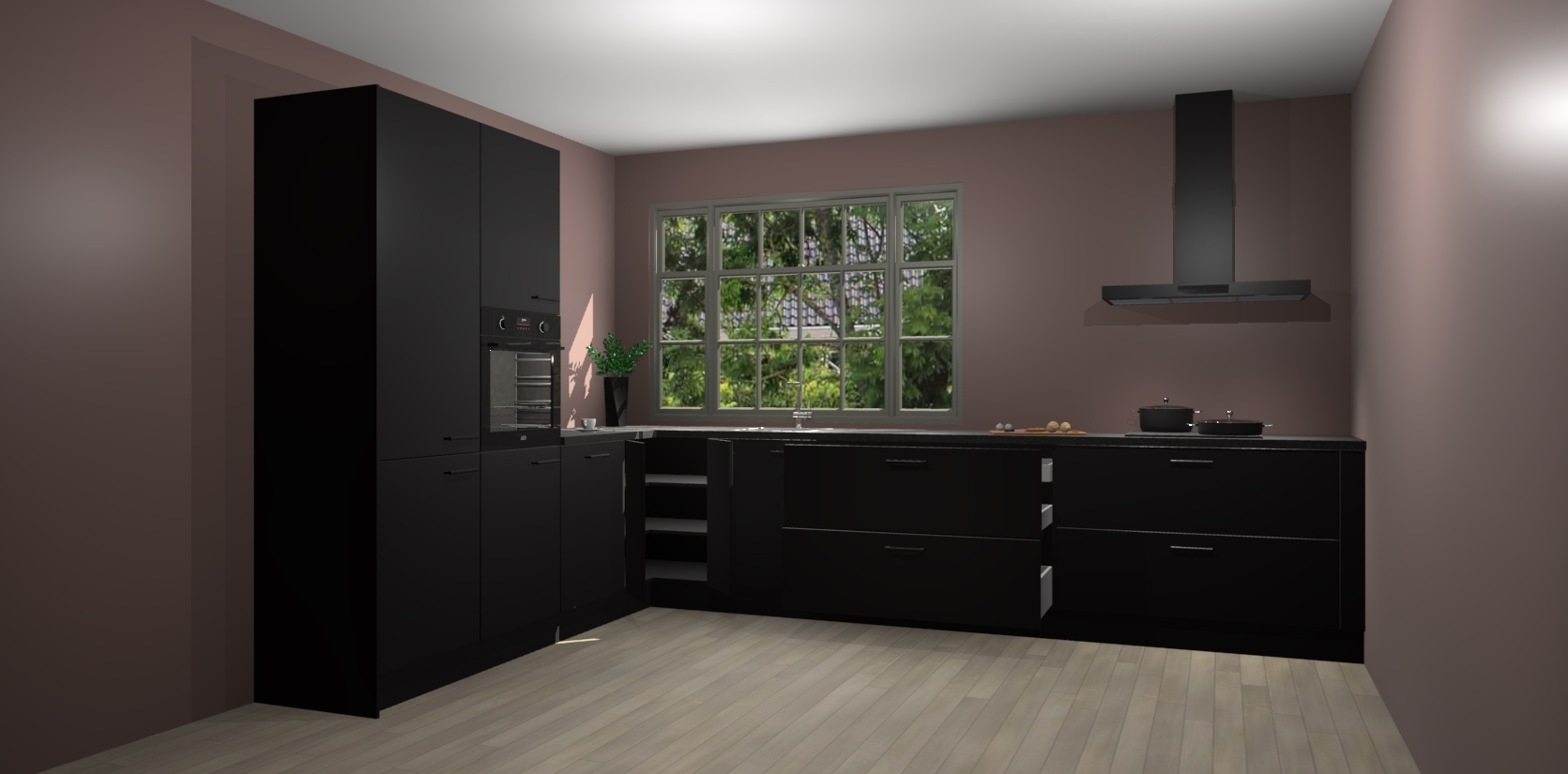 Kom dichtbij de perfecte keuken van uw dromen met de Zwarte keuken Malaga. Met een prachtige houtlook en eigentijds ontwerp, straalt deze keuken warmte en sfeer uit. Of u nu liefhebber bent van traditionele of moderne stijlen, er is genoeg ruimte om aan al uw behoeften te voldoen.