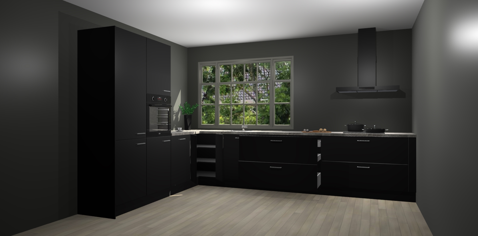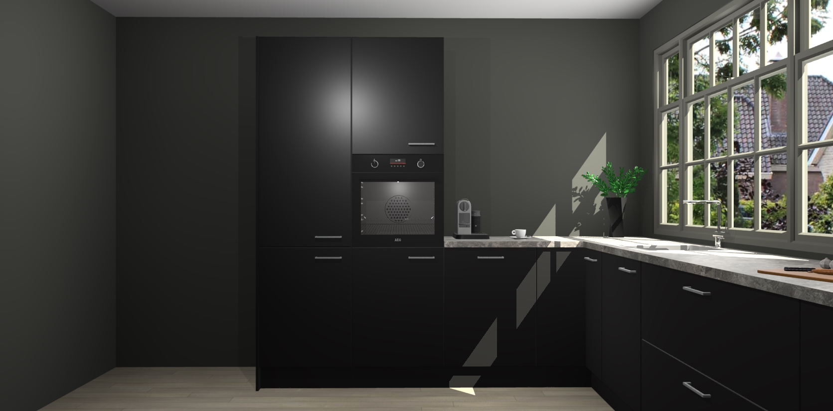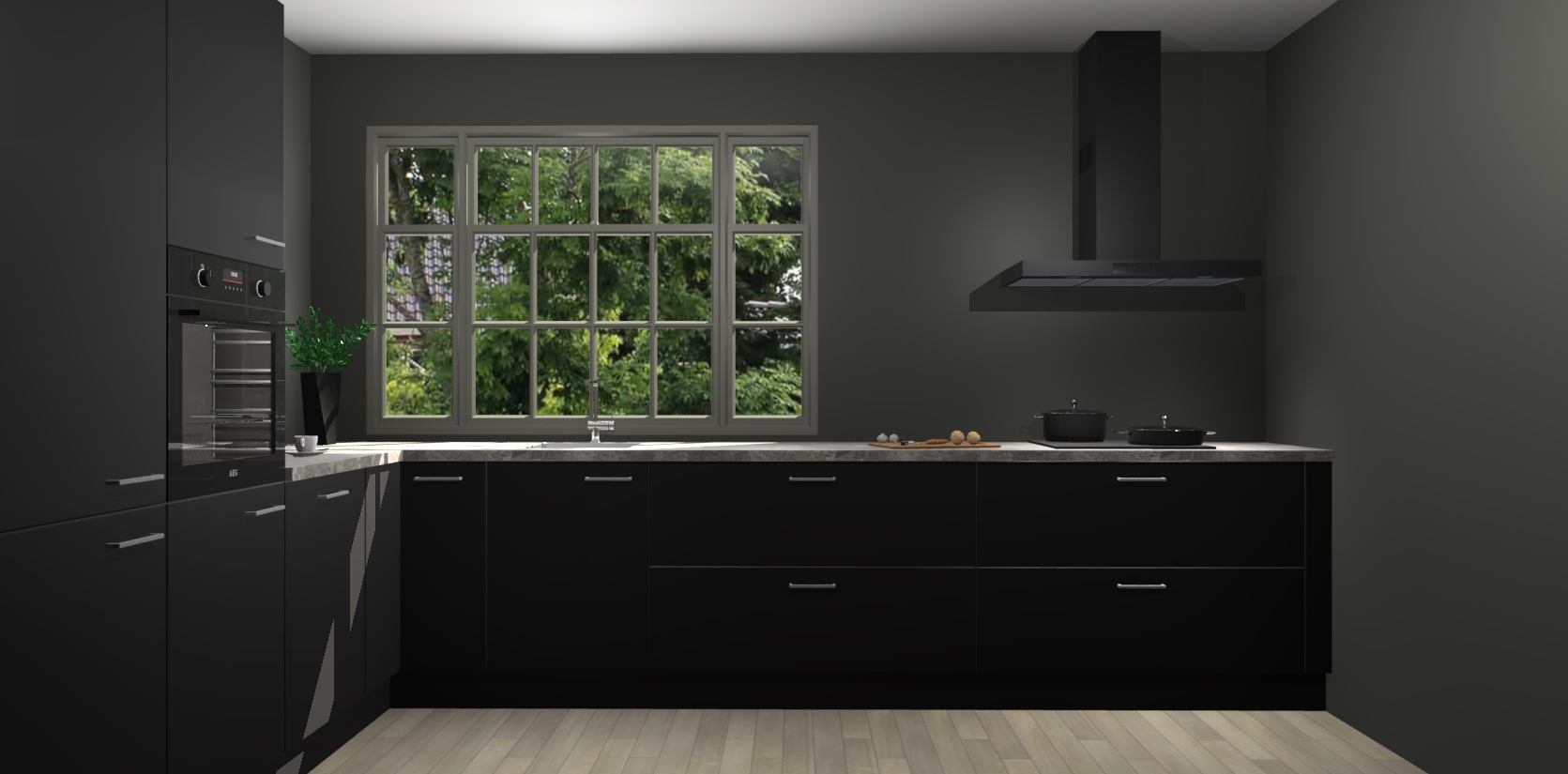Kom dichtbij de perfecte keuken van uw dromen met de Zwarte keuken Malaga. Met een prachtige houtlook en eigentijds ontwerp, straalt deze keuken warmte en sfeer uit. Of u nu liefhebber bent van traditionele of moderne stijlen, er is genoeg ruimte om aan al uw behoeften te voldoen.
