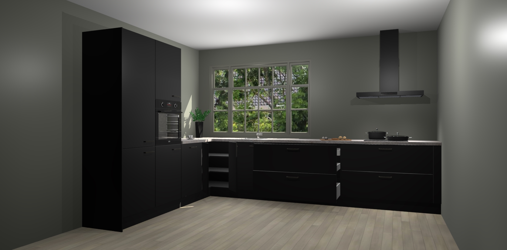 Kom dichtbij de perfecte keuken van uw dromen met de Zwarte keuken Malaga. Met een prachtige houtlook en eigentijds ontwerp, straalt deze keuken warmte en sfeer uit. Of u nu liefhebber bent van traditionele of moderne stijlen, er is genoeg ruimte om aan al uw behoeften te voldoen.