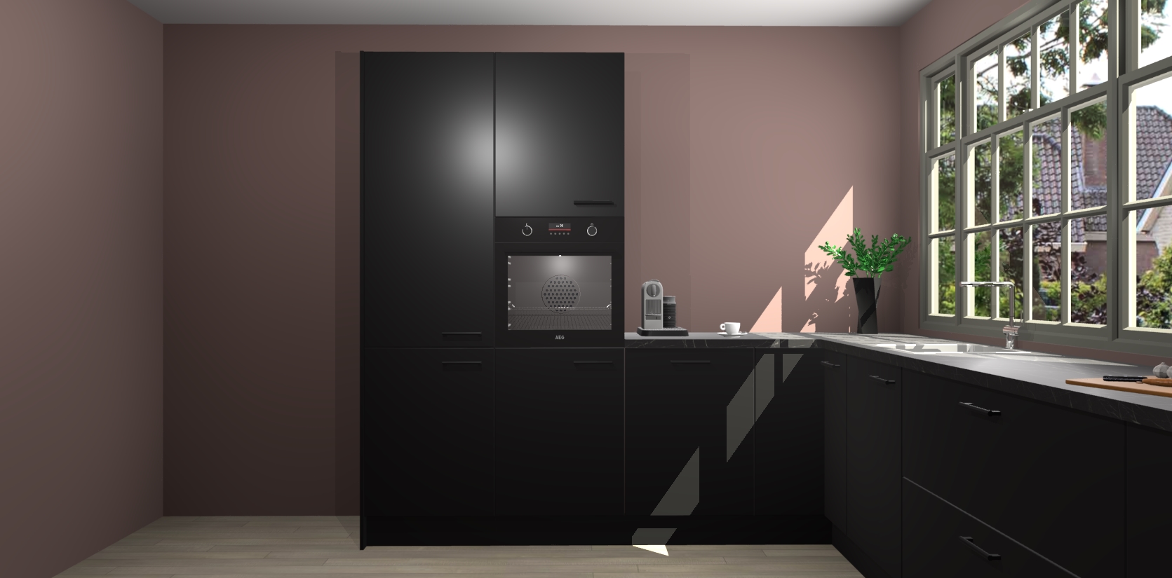 Kom dichtbij de perfecte keuken van uw dromen met de Zwarte keuken Malaga. Met een prachtige houtlook en eigentijds ontwerp, straalt deze keuken warmte en sfeer uit. Of u nu liefhebber bent van traditionele of moderne stijlen, er is genoeg ruimte om aan al uw behoeften te voldoen.