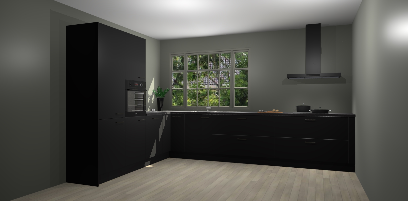 Kom dichtbij de perfecte keuken van uw dromen met de Zwarte keuken Malaga. Met een prachtige houtlook en eigentijds ontwerp, straalt deze keuken warmte en sfeer uit. Of u nu liefhebber bent van traditionele of moderne stijlen, er is genoeg ruimte om aan al uw behoeften te voldoen.