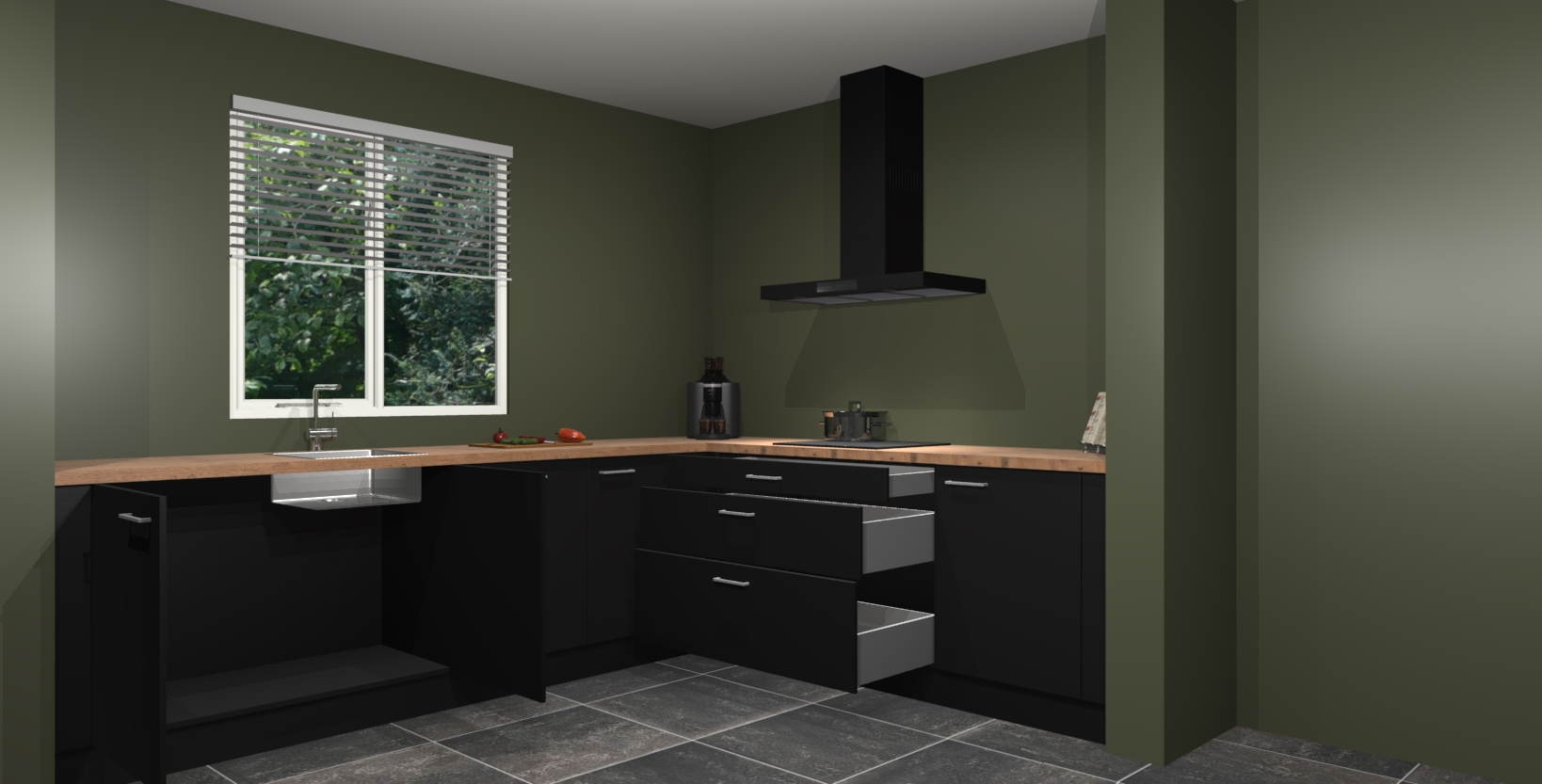 Wij presenteren de revolutie in keukens: de Zwarte keuken Moroni. Met modern design, een tijdloos uiterlijk en kasten die al voor gemonteerd worden geleverd, laat deze stijlvolle keuken uw kookervaring op een hele nieuwe manier transformeren.
