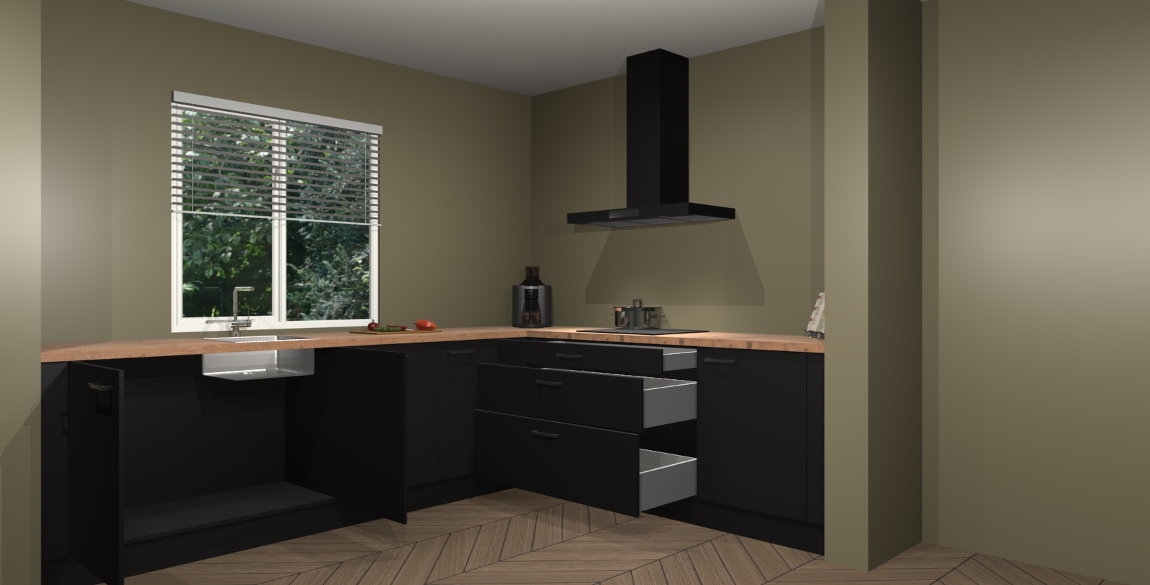 - Bij een hoekwerkblad zijn de hoeken in gevreesd en op maat gemaakt