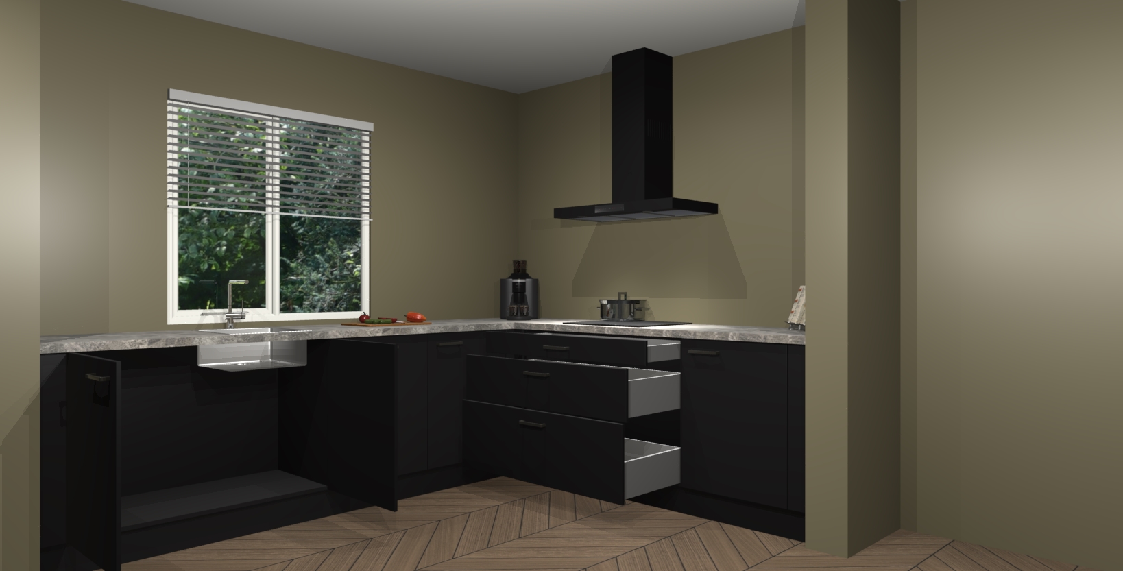 Wij presenteren de revolutie in keukens: de Zwarte keuken Moroni. Met modern design, een tijdloos uiterlijk en kasten die al voor gemonteerd worden geleverd, laat deze stijlvolle keuken uw kookervaring op een hele nieuwe manier transformeren.